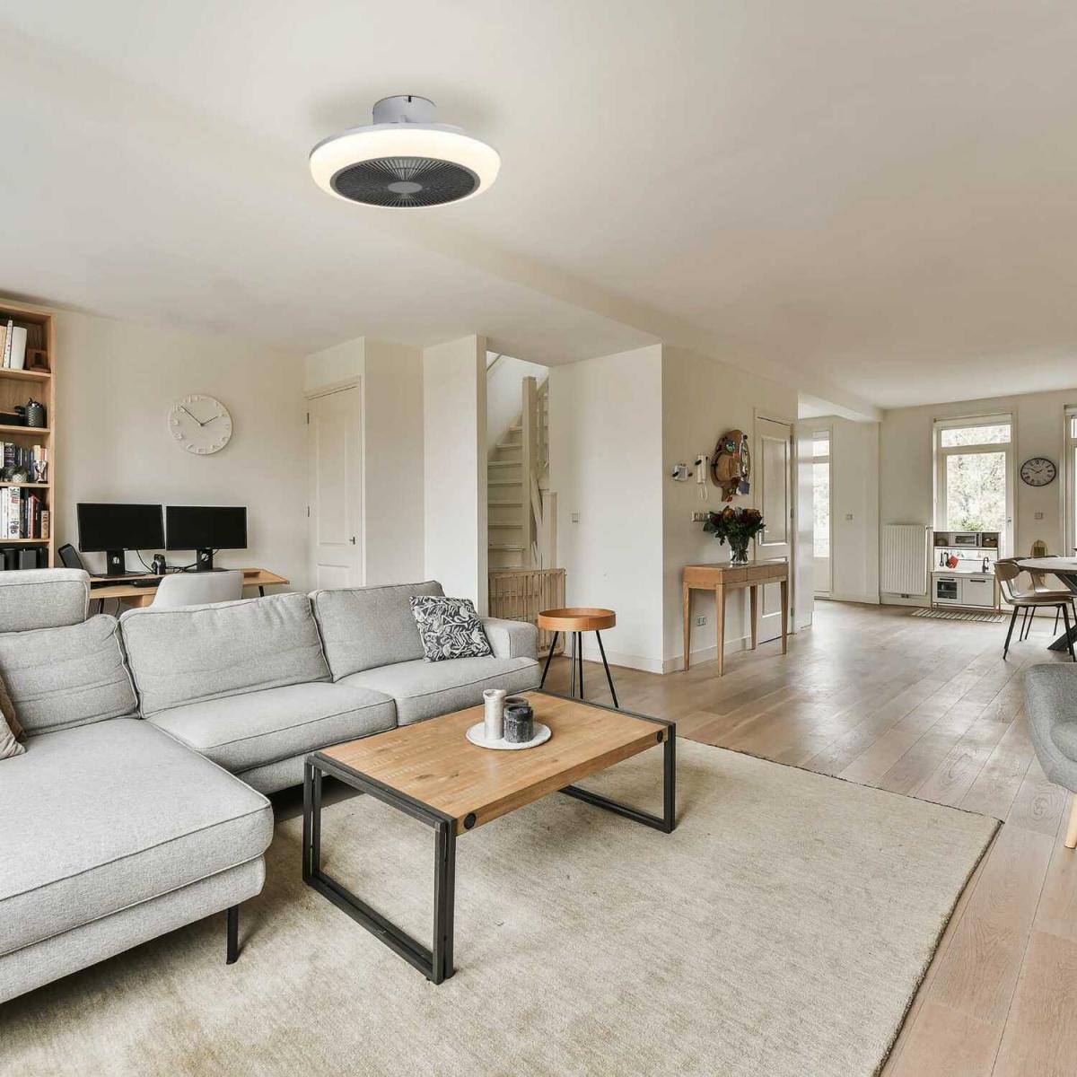 I love the EGLO Sayulita fan for its practical yet modern design, making it a versatile choice for various interiors. Its compact 45cm size and sleek white and grey palette make it ideal for contemporary spaces or smaller rooms where a subtle, functional statement is desired. It works particularly well in minimalist, Scandinavian, or coastal-inspired interiors, adding a touch of modernity without overwhelming the space. Styling tips include pairing it with light-coloured furnishings and layered textures to enhance a fresh and airy atmosphere. Don't forget to consider its placement - central positioning will optimise airflow while keeping your ceiling looking neat and uncluttered.