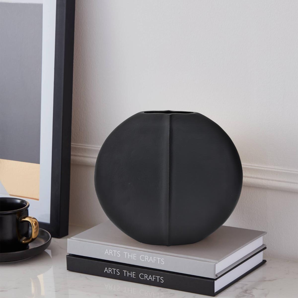 I love this black round vase for its sleek, minimalistic design that effortlessly adds sophistication to any space. Its organic shape brings a touch of modernity without feeling cold or clinical, making it versatile across various interiors, from contemporary to industrial or even eclectic styles. For practical styling, I recommend pairing it with neutral florals or dried botanicals to emphasise its understated elegance. It also works well as a standalone piece on a mantel or sideboard, or as a centrepiece filled with a single statement stem for standout impact. Its matte black finish provides a timeless, chic backdrop, allowing you to experiment with colour and texture in your arrangements.