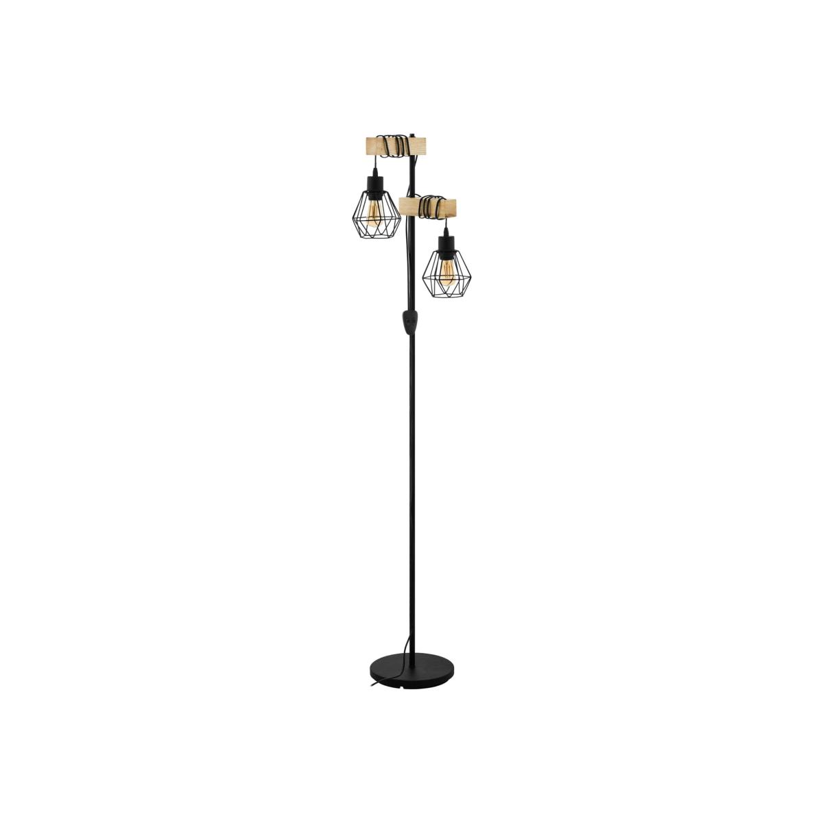 Rustic wooden floor lamp finished with suspended caged shades. The wooden table lamp is part of the contemporary Townshend range by Eglo Lighting. Boasting a stylish black frame with two wooden arms that suspend black caged shades, this stylish light will be complete when used with vintage bulbs. Feature this table lamp in any modern living space to create a warm and vintage vibe. We think this light looks best with any of our E27 LED Vintage light bulbs for a rustic, warm glow.