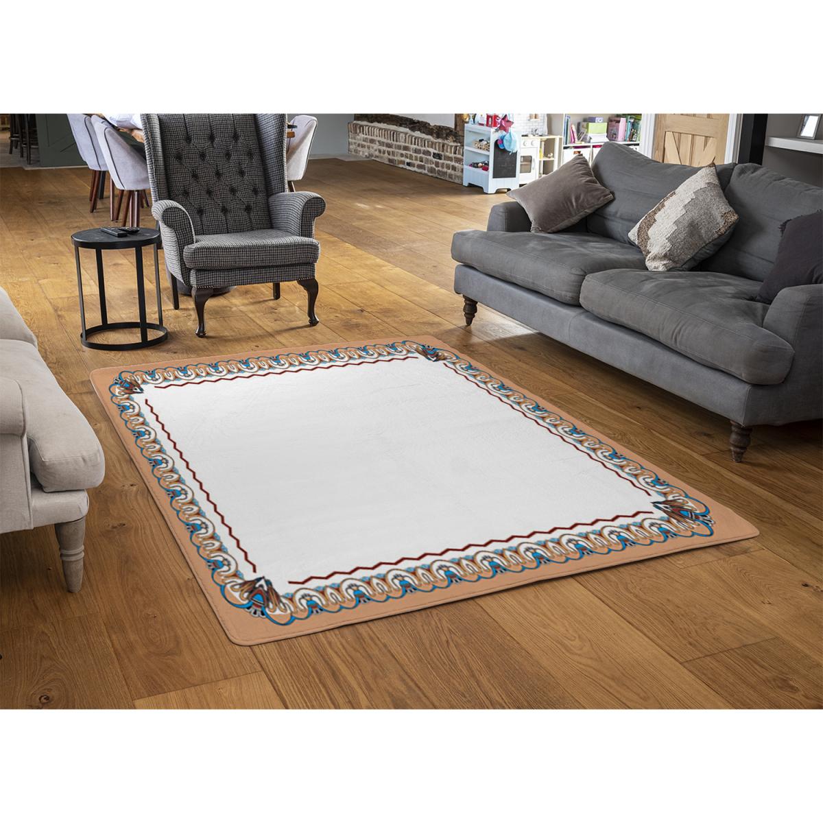 I love this one for adding a pop of colour and warmth to various interiors, especially neutral schemes or rustic spaces. The bold orange border on the Egypt border rug makes it a versatile piece that can tie together vintage or eclectic decor. It's great for living rooms, bedrooms, or even hallways where you want a practical yet stylish update. For styling tips, try layering it over a larger neutral rug for added depth, or pair it with natural wood furnishings to enhance its earthy vibe. Keep accessories simple to let the rug be the statement piece, and consider using complementary accents in rust or terracotta to create a cohesive look.