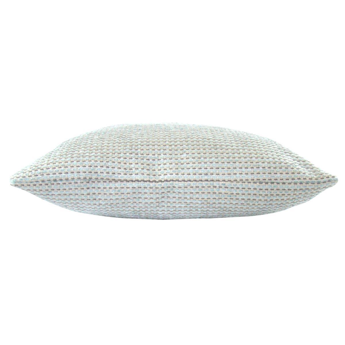 Crafted from durable materials in duck egg blue tones, this patterned cushion cover features a repeating rectangular design. This cushion cover is suitable for a 57cm x 57cm insert.