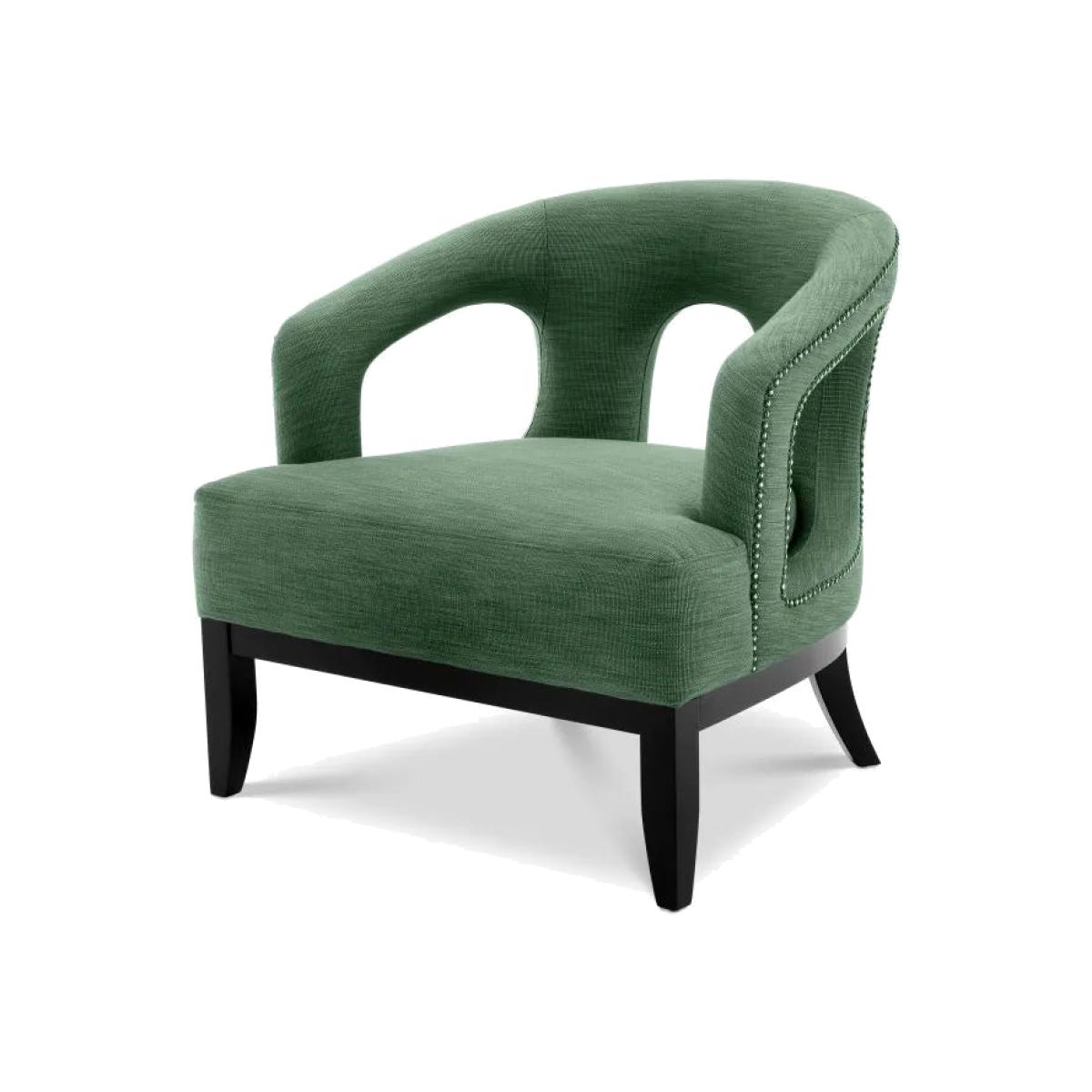 Steal the show with the gorgeous Adam Chair. Exuding timeless beauty, this elegant mid-century modern seating with Albin green upholstery and accenting nailhead trims, is sure to be an eye-catcher in your lounge, bedroom or dressing room. Finish/Colour: Green