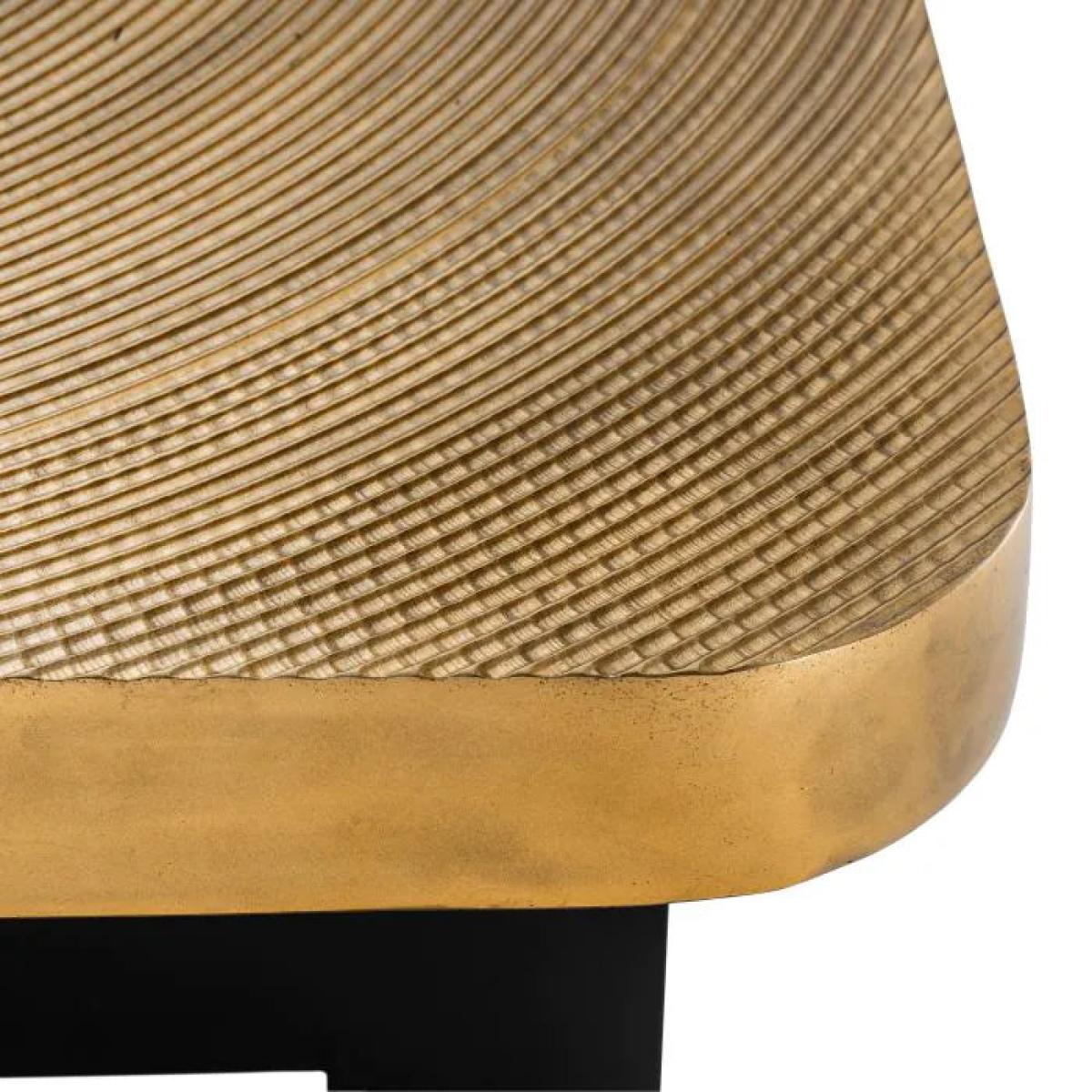 With a simple yet striking design and crafted to the highest standards using mahogany wood and aluminium, the Agoura Side Table will feel at home in any living space. The ribbed tabletop has rounded corners and features a brass finish, which contrasts beautifully with the sturdy black finished frame. Finish/Colour: Brass (antiqued)