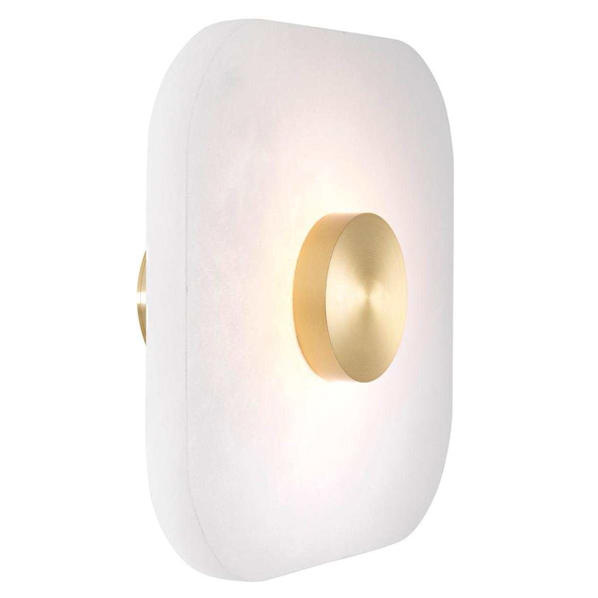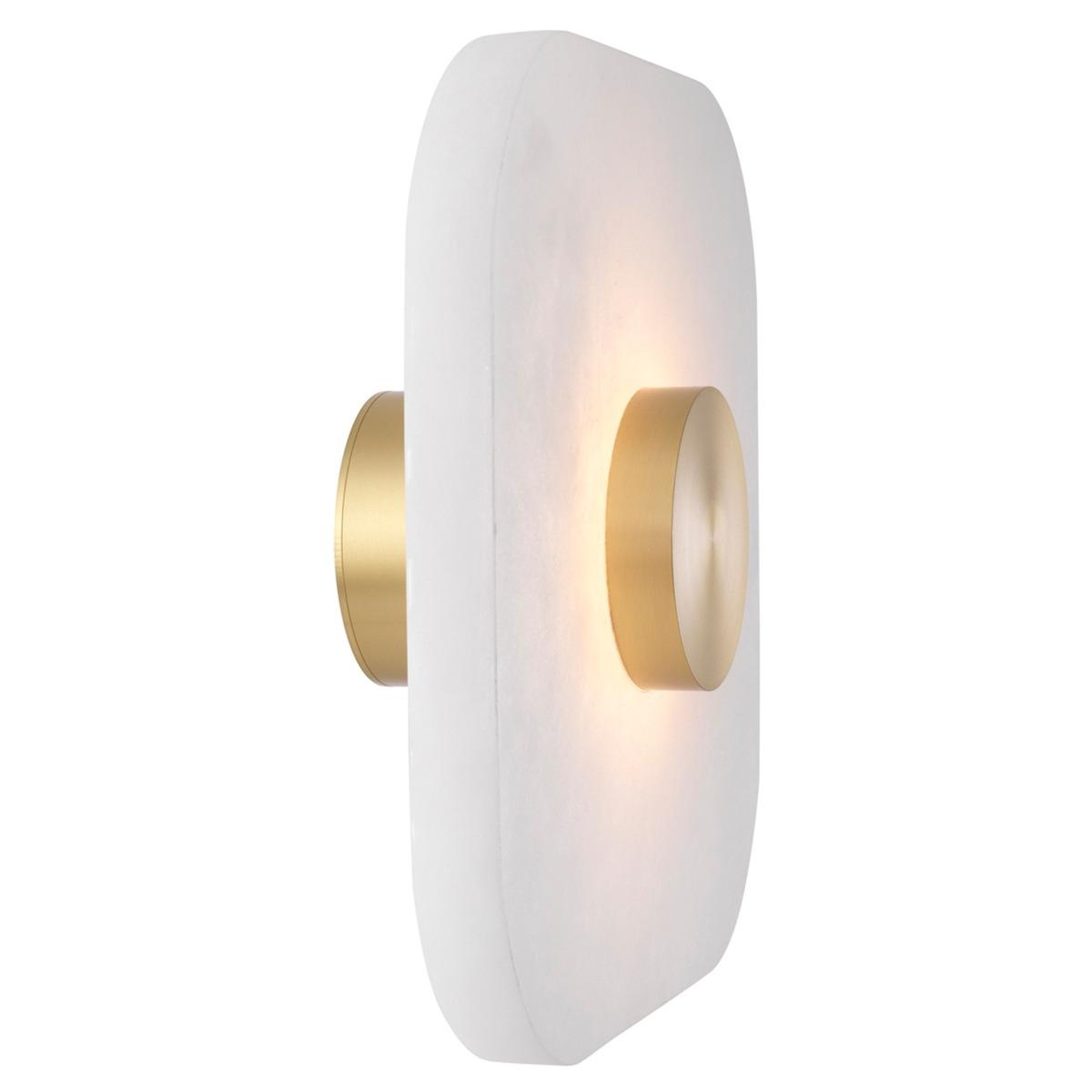 Emitting a warm pool of light, the Aguaron S Wall Lamp is known for its extraordinary alabaster shade that spreads a soft glow on the wall around the fitting. Completed with a central brass element for refined detail, this capturing lamp will create a warm and inviting atmosphere. Pair with the Eichholtz Aguaron L Wall Lamp which differs in size and depth to establish an intriguing effect in your interior.