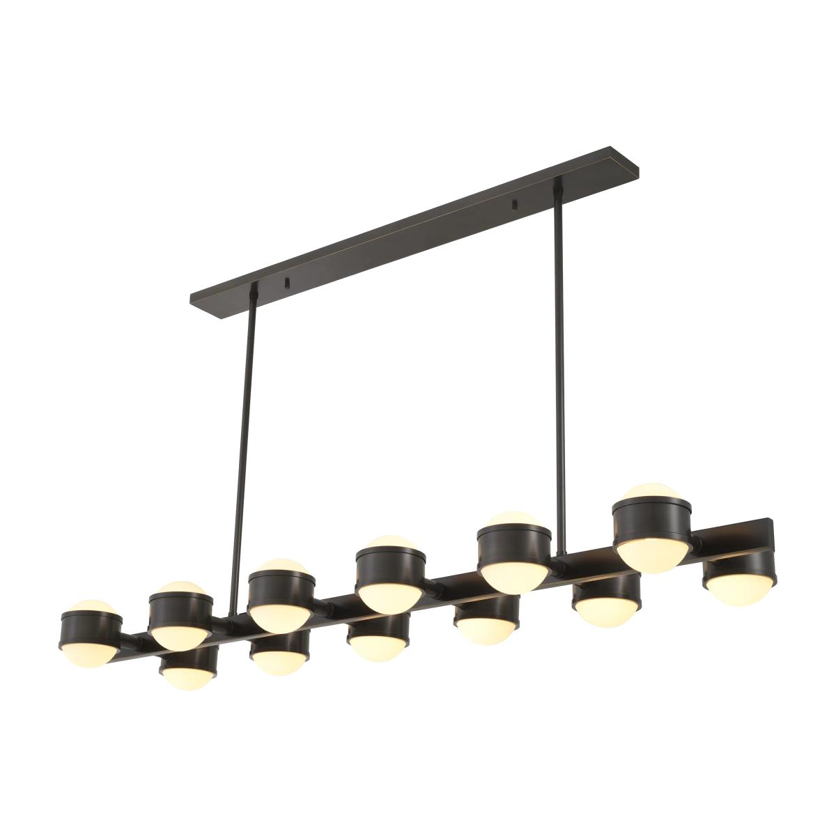 Chandelier Aldo delivers a contemporary stylish look with excellent illumination. This Mid-Century modern 12-light ceiling pendant will certainly take centre stage with its series of rings in a bronze highlight finish. It comes with downrods in three different lengths so you can model the lamp to your liking. Perfect for over a dining table.