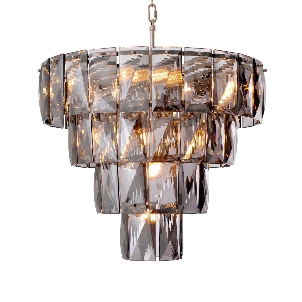Design. Create a divine focal point with the Amazone S Chandelier by Eichholtz, made from beautiful Smoke Crystal Glass pendants to reflect dramatic fractals of light around the room. Paired with a Nickel frame, the tiered structure is an icon of luxury illumination for any modern décor. Other options available within this range, for more information and to discuss additional options complete our. Enquiry form. Or. Contact our specialist brand advisors.