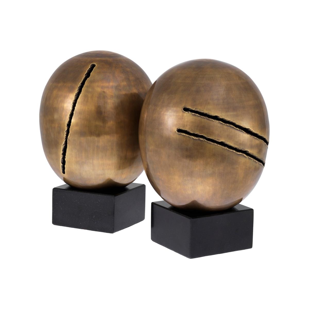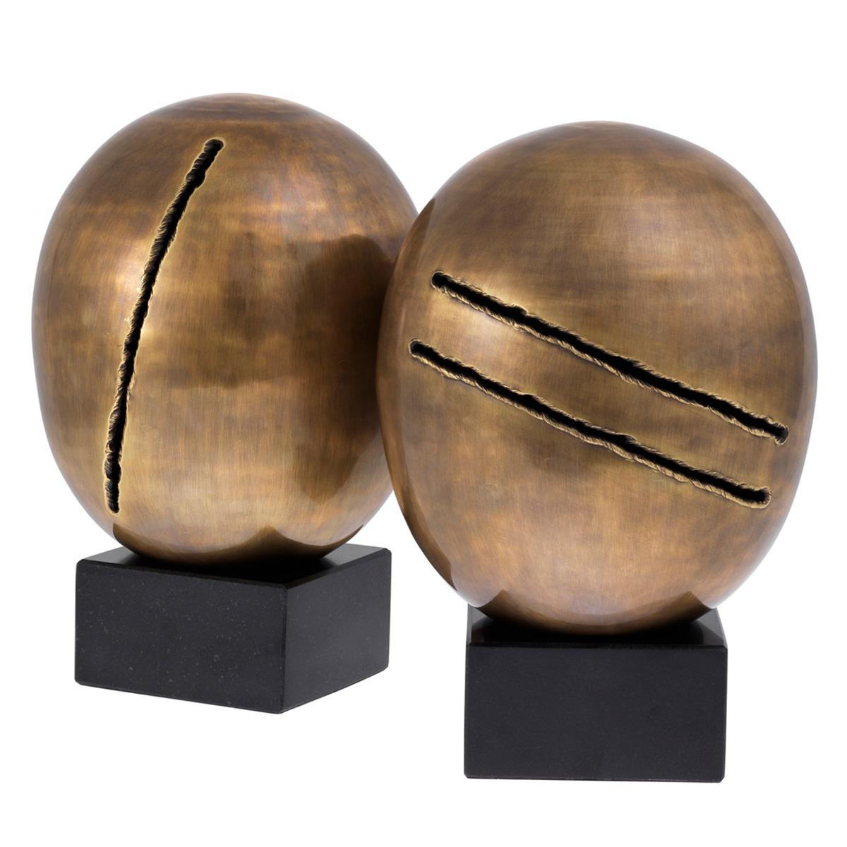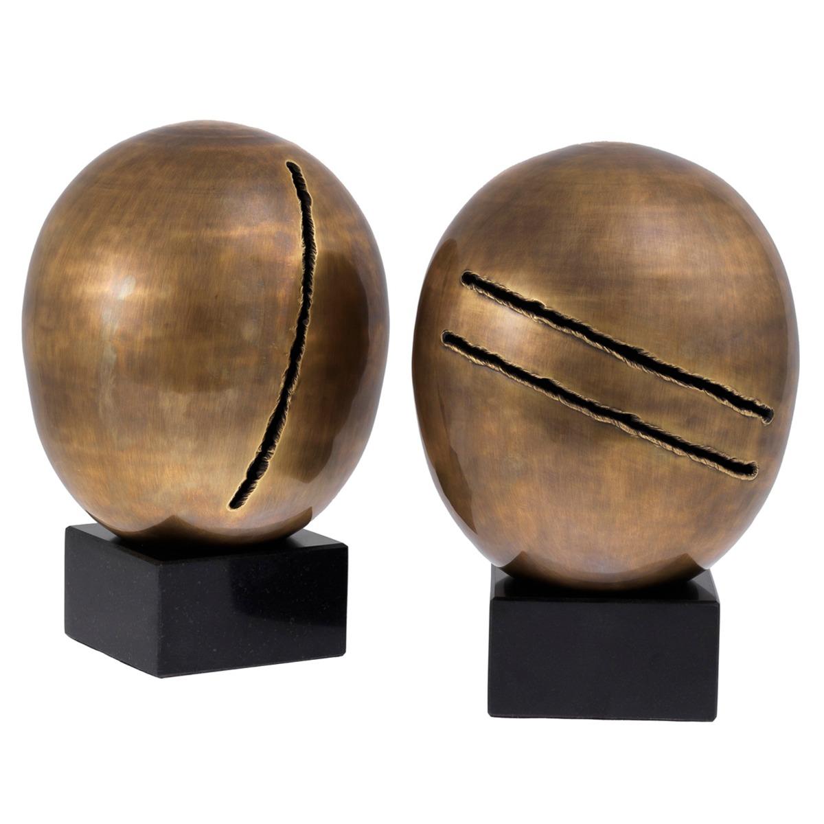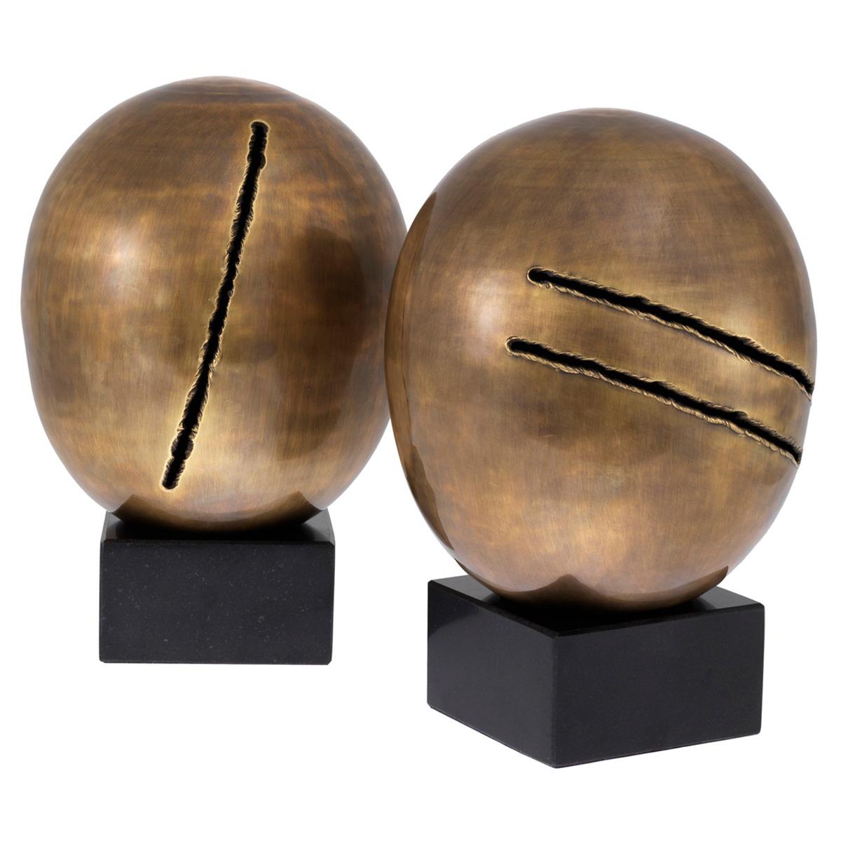The Artistic Sculpture is a 2-piece set that is sure to make a difference to your interior decoration. Handcrafted by skilled artisans in Italy, the smooth vintage brass body is defined by unique carvings and is set on a black granite base for added refinement. A one-of-a-kind accessory to tie your scheme together, the Artistic Sculpture will make an elegant statement.