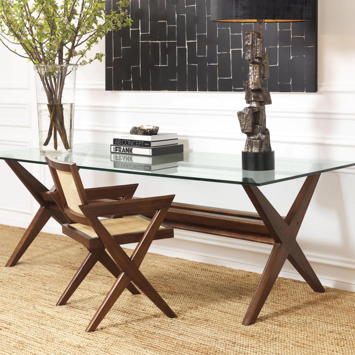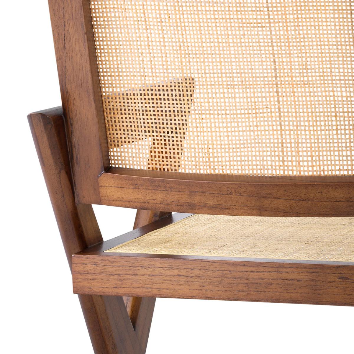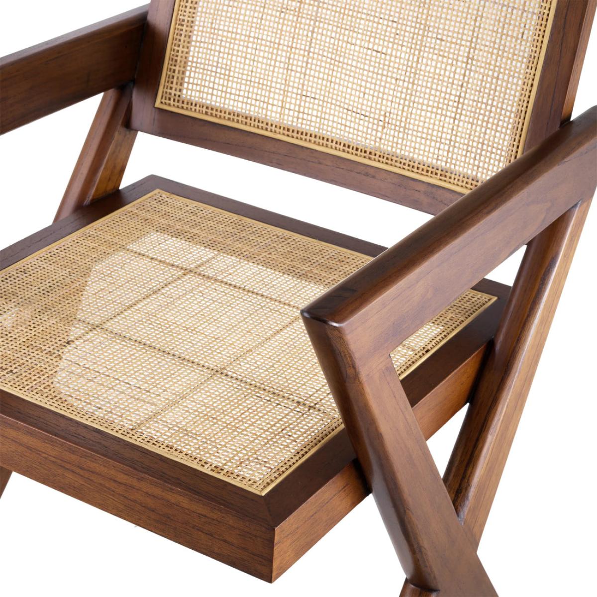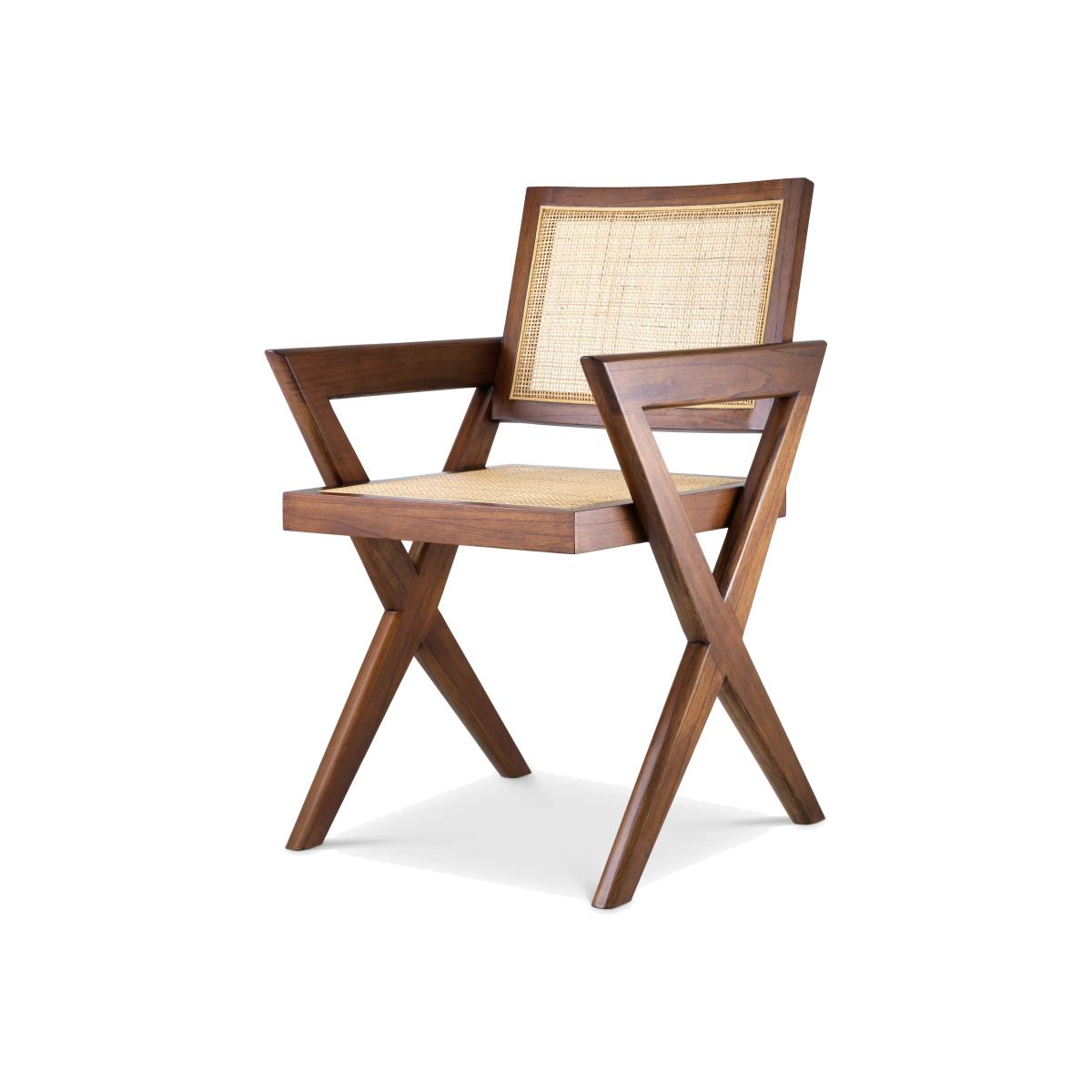 Created to celebrate the timeless beauty of iconic Chandigarh furniture from the 1950s and 1960s, Chair Augustin is a mix of simplicity and craftsmanship. With a solid wood frame in a classic brown finish, this sturdy yet elegant dining chair with X-shaped legs reminds one of iconic minimalist designs. Handwoven rattan cane adorns the seat and backrest.