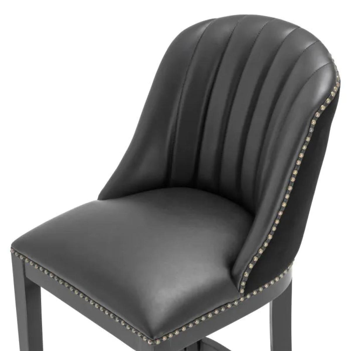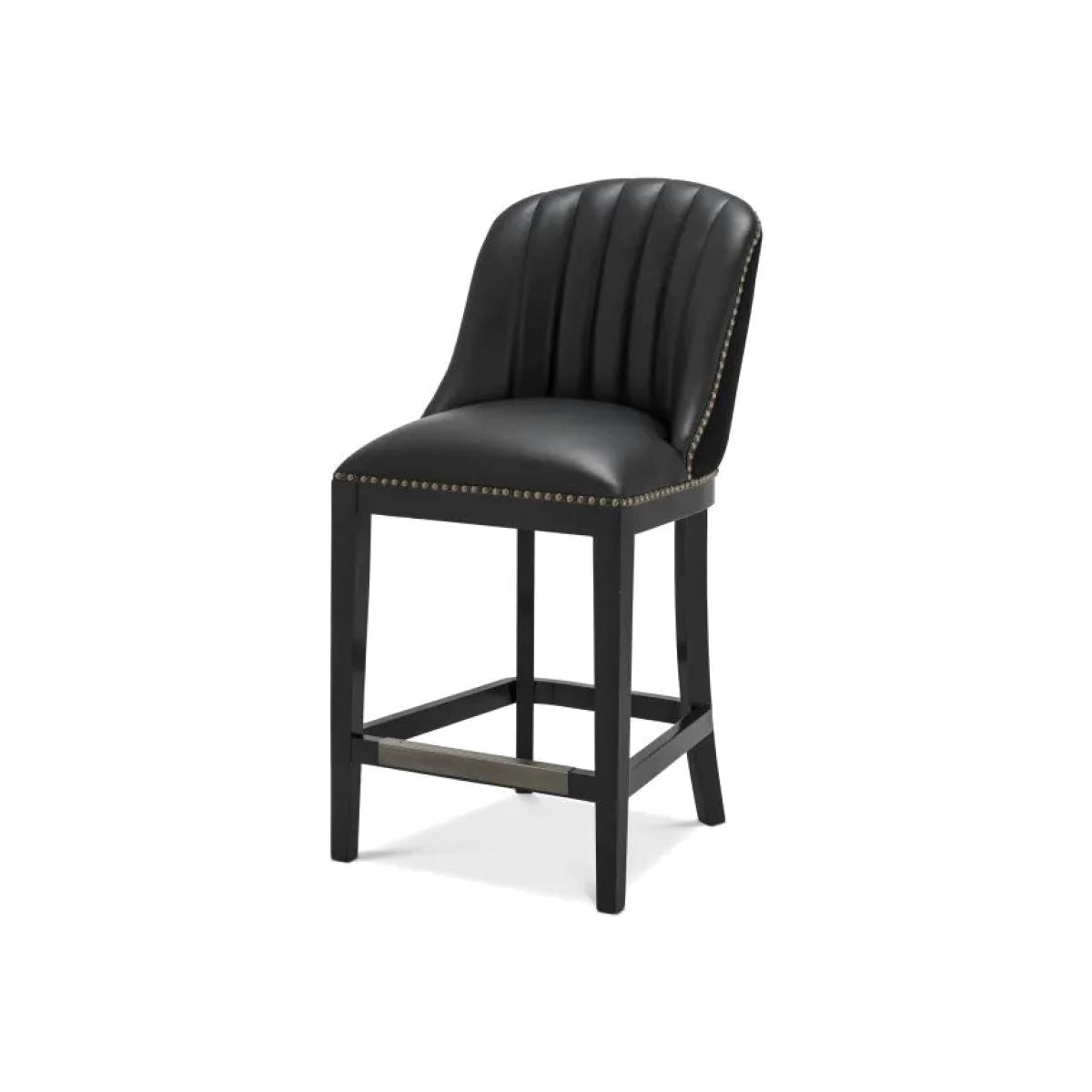 Pairing style with comfort, the Balmore Counter Stool is just what you're looking for. Reminiscent of the atmosphere in an old gentlemen’s club, this beautiful bar stool is equally at home in classic décors as in contemporary interior schemes. It features a black timber frame with footrest and a black faux leather seat with black velvet backside. The seat is adorned with antique brass nailheads. Finish/Colour: Black