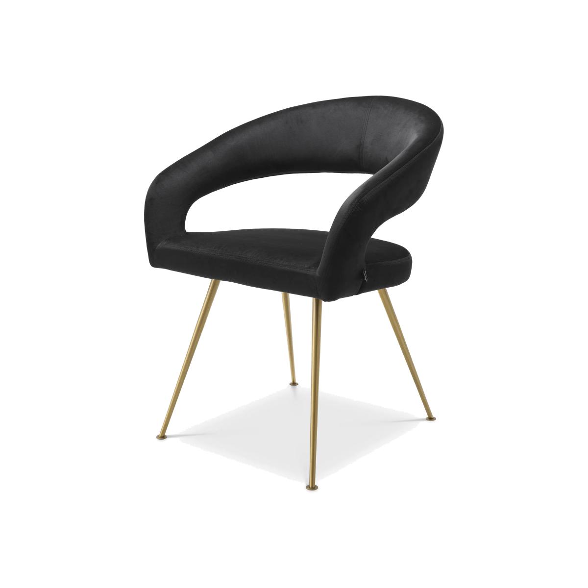 Add character to your dining room with the Bravo Dining Chair. Combining the elegance of 50s furniture with modern-day design. The smooth Roche black velvet upholstery gives this chair an inviting feel, while the brushed brass tapered legs add a contemporary and luxurious look to your home.