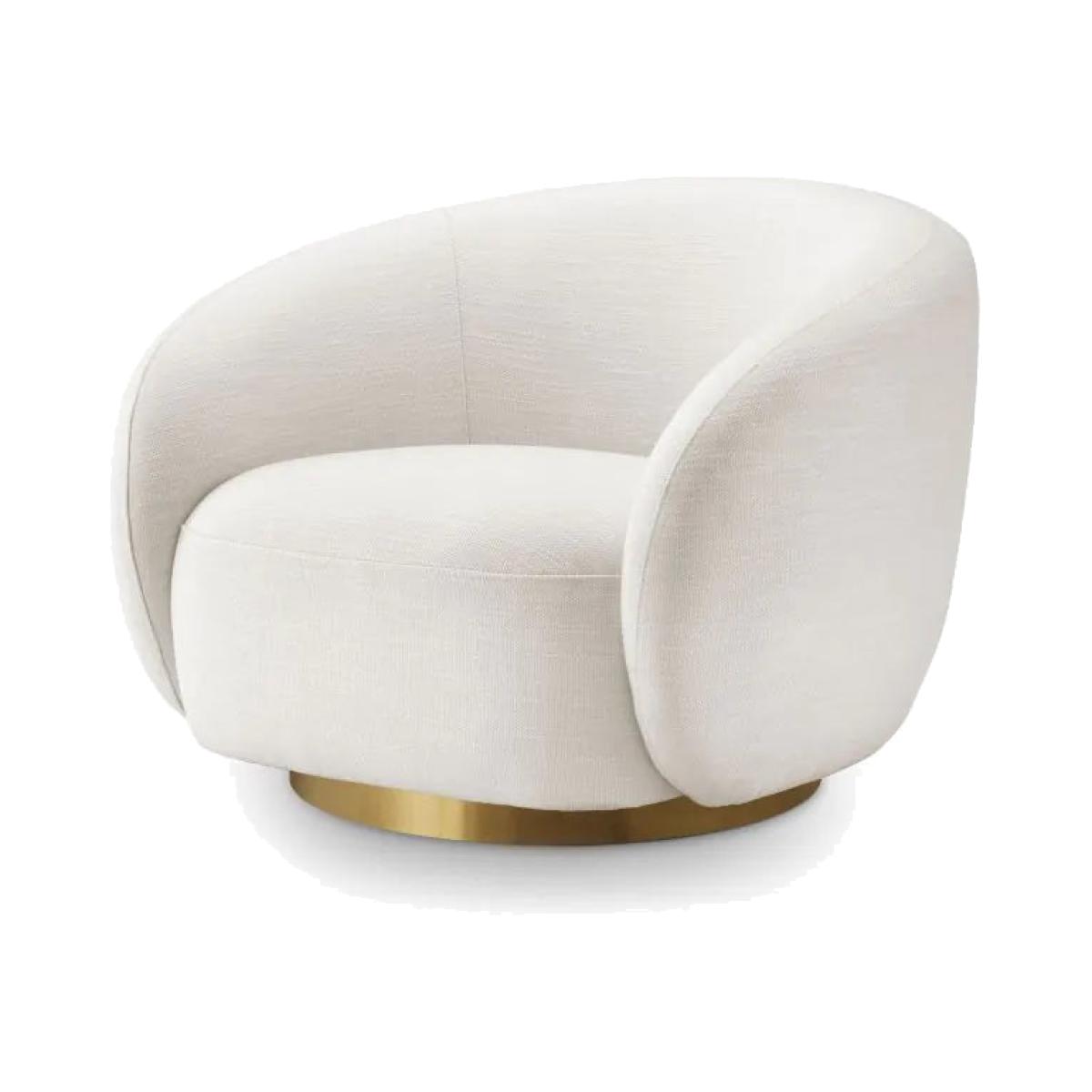 Swivel and relax to your heart’s content in Chair Brice, an ideal addition to your living space. Cosy and contemporary, this elegantly curved swivel chair features a stylish Avalon white upholstery and a brushed brass swivel base. Finish/Colour: White, Off-white