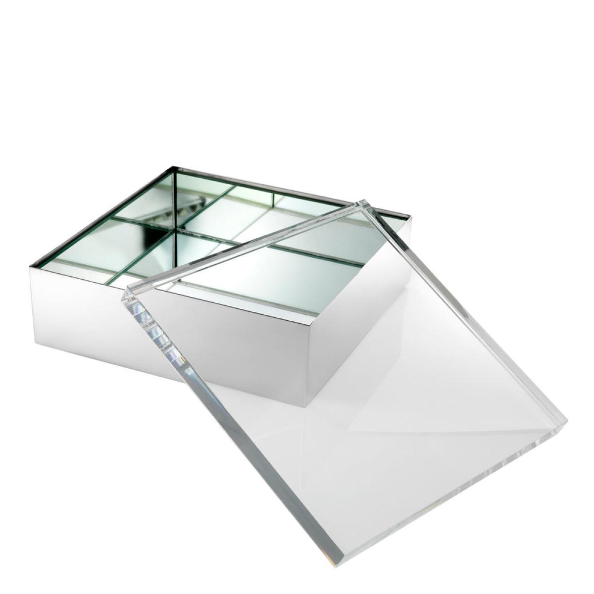 The square Brook Box has a lid of clear acrylic and a mirror glass interior for the ultimate display of decorative objects such as precious stones. The exterior of the case features a nickel finish. Downloads:. Item specification sheet. Finish: Nickel finish | mirror glass | clear acrylic. *Moot Trading Ltd is not a lender and acts only as an introducer. The credit product is provided by Klarna Bank AB (publ). Credit is only available to permanent UK residents aged 18 and over, subject to status. Terms and conditions apply. Please note that the following products are not regulated by the FCA: Pay in 30 days and Pay in 3 instalments. Read More.