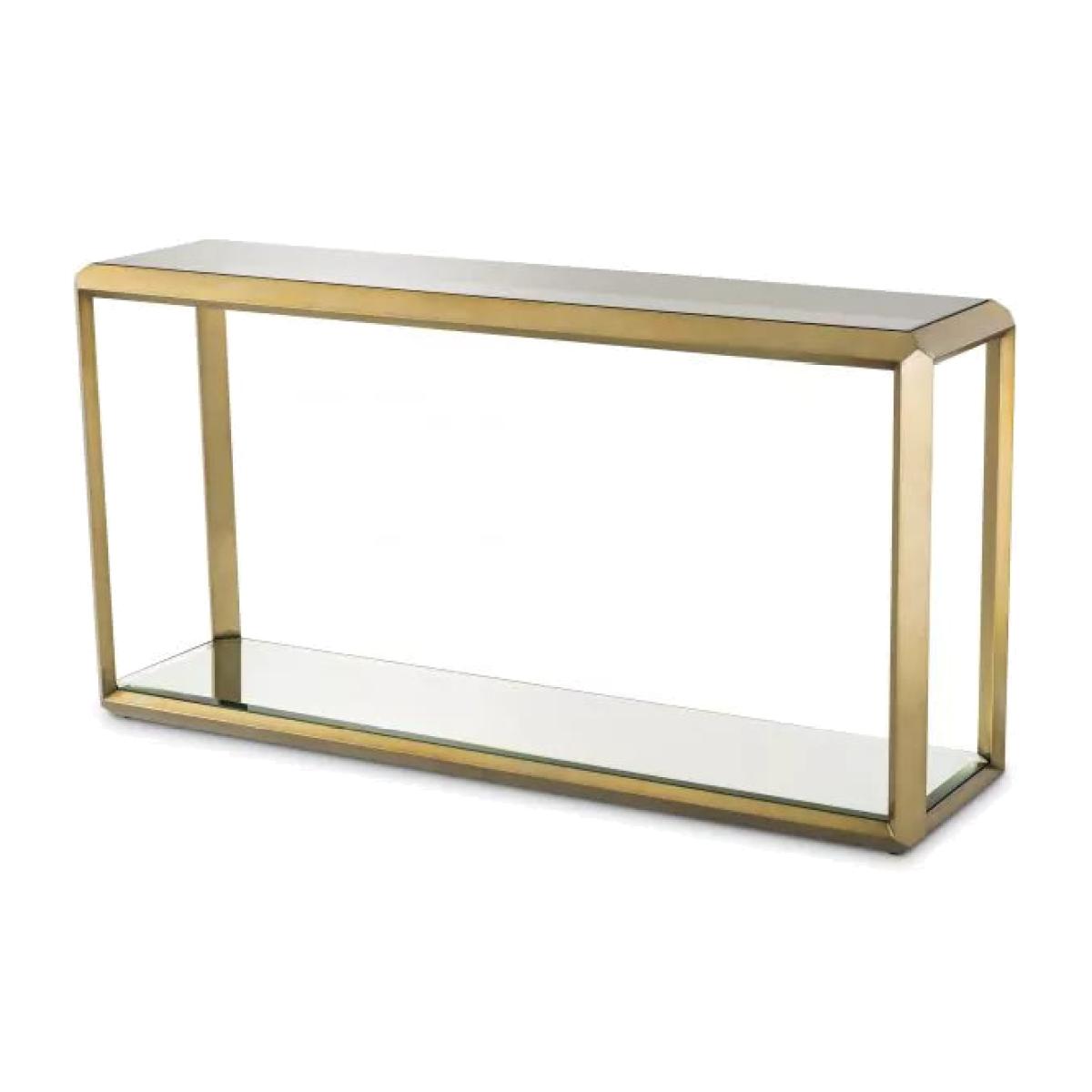 I love this console because of its sleek, contemporary design that easily elevates both modern and classic interiors. The gold frame adds a touch of luxury without overwhelming, making it a versatile piece for hallways, living rooms, or even behind a sofa. It works well styled with a vase ofStatement greenery or a selection of coffee table books to create an inviting vignette. Practical tip: keep the top surface clear if space is limited, or add a decorative tray to organise smaller items. The lower shelf is also perfect for books or decorative objects, giving you extra storage without cluttering the space. Overall, this piece lends itself well to stylish, uncluttered interiors that benefit from a sophisticated touch.