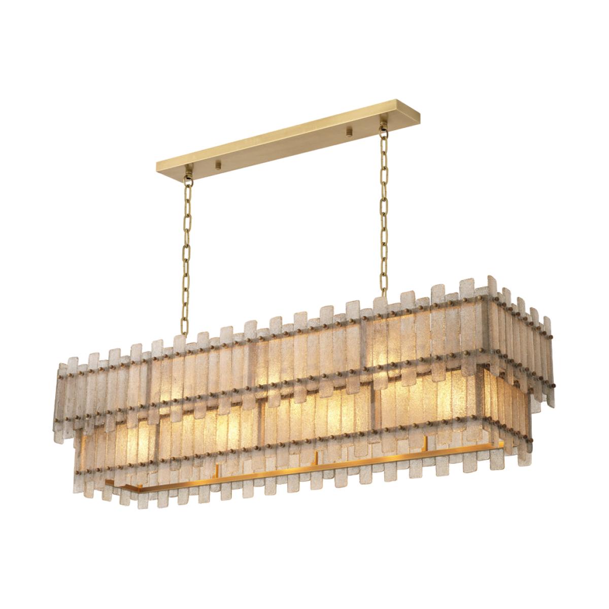 Chandelier Caprera presents a contemporary twist on a classic design. Finished in antique brass, it features 10 lights in a rectangular, two-tiered design. Hand-blown glass plates with a roughened. View More. Chandelier Caprera presents a contemporary twist on a classic design. Finished in antique brass, it features 10 lights in a rectangular, two-tiered design. Hand-blown glass plates with a roughened backside produce a startling effect when the lamp is lit.