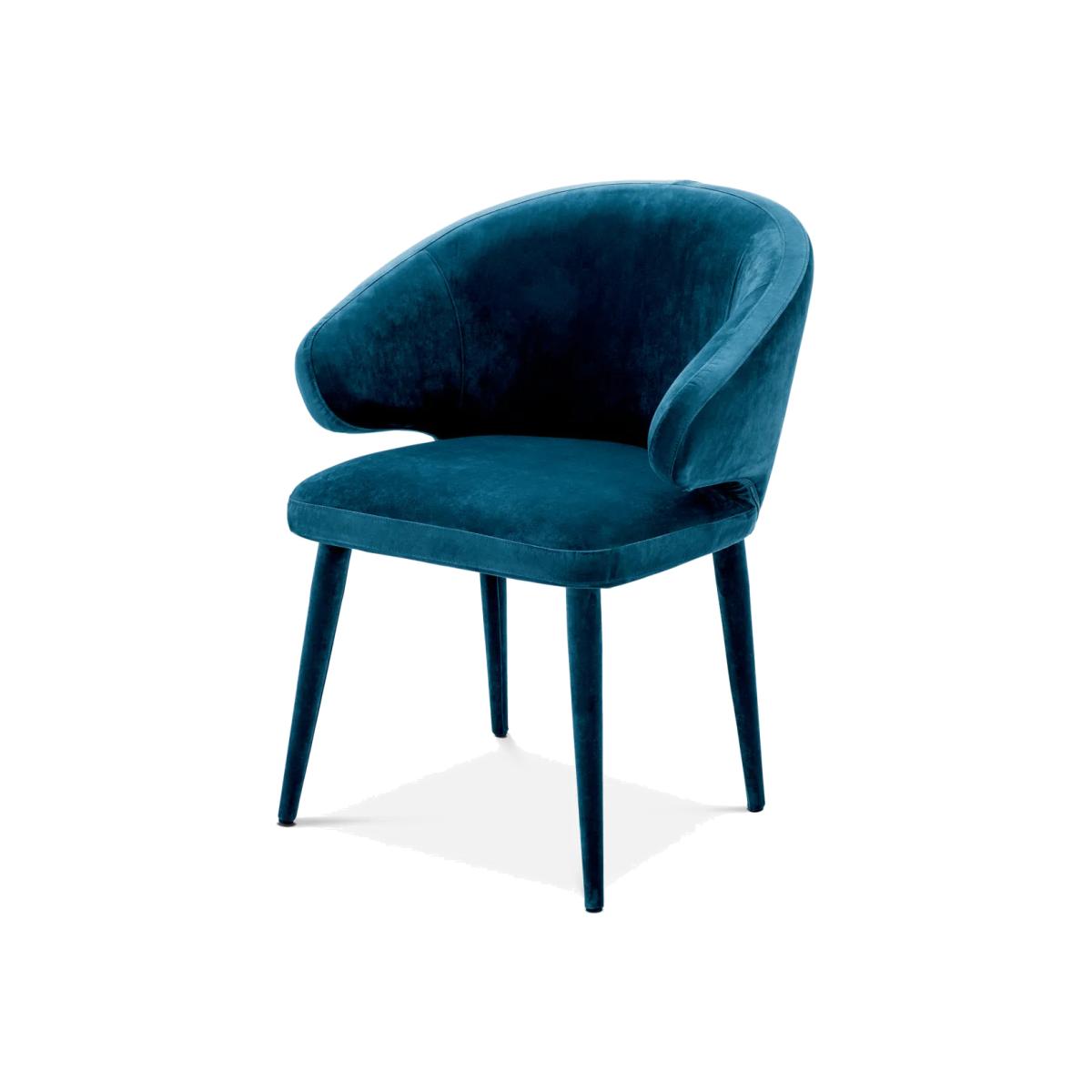 Eichholtz Cardinale Dining Chair Velvet Roche Teal Blue