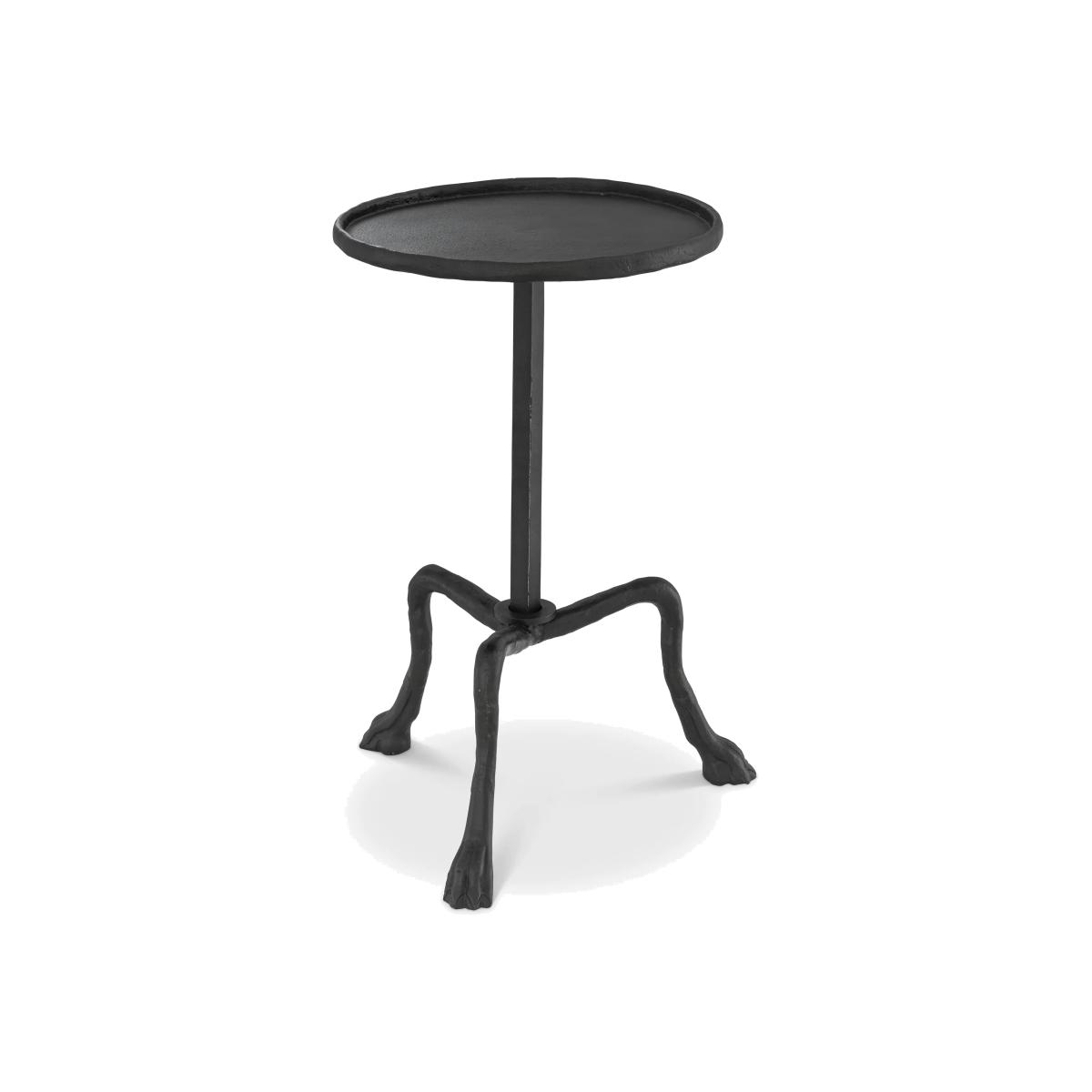 Whether starring beside your sofa or acting as a nightstand in the master bedroom, the small Carlos Side Table is always a charming stage. This bronze finish bistro style end table has a round top with a raised edge and a stem with tripod base.‎ Finish/Colour: Bronze, Gunmetal