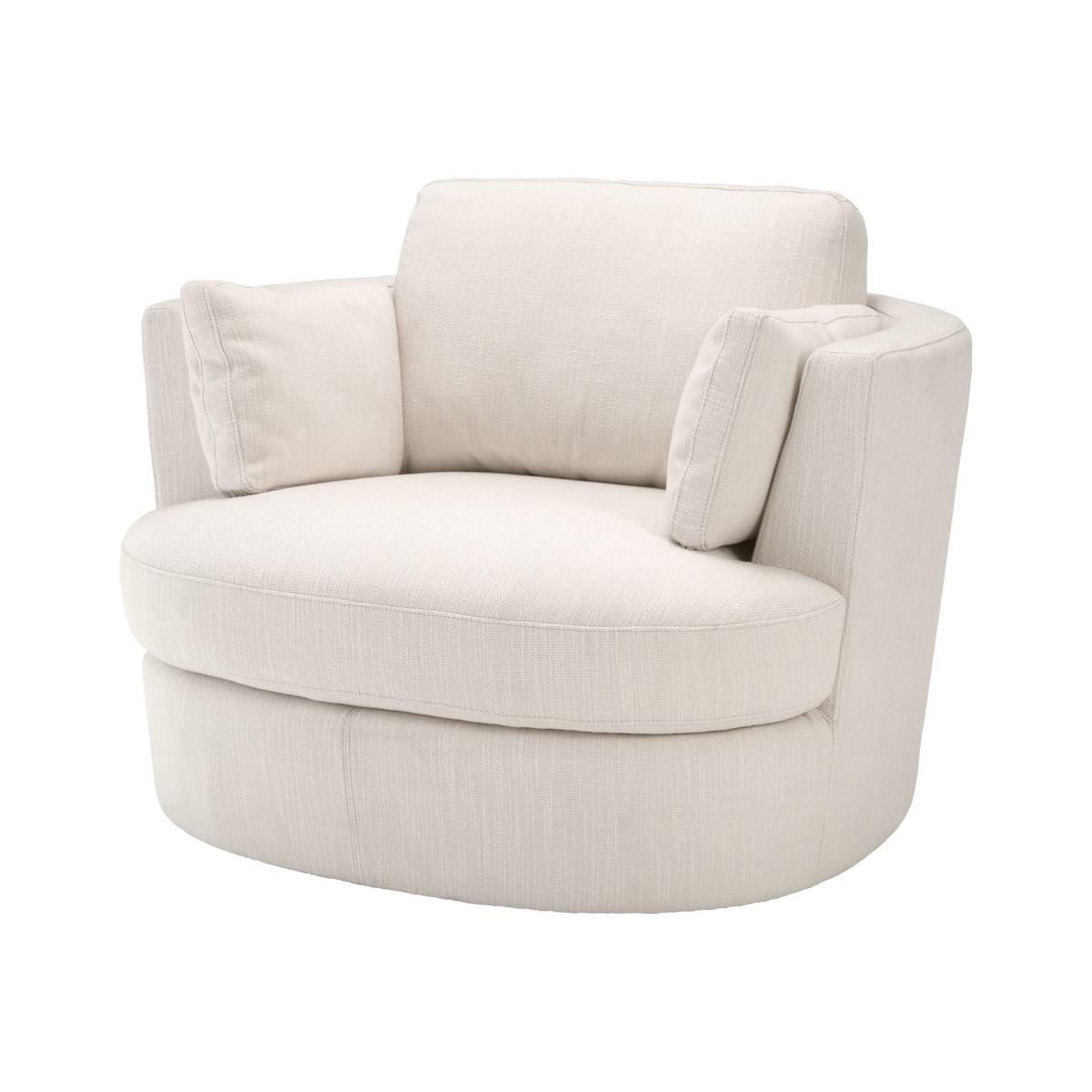 Create an island of relaxation in your living space with the Clarissa Chair. This sumptuous club chair with swivel base features an Avalon white upholstery. It comes with two cushions for extra comfort and cosiness. Dimensions: W:110 x D:100 x H:85 cm. Downloads: Product Specification Sheet