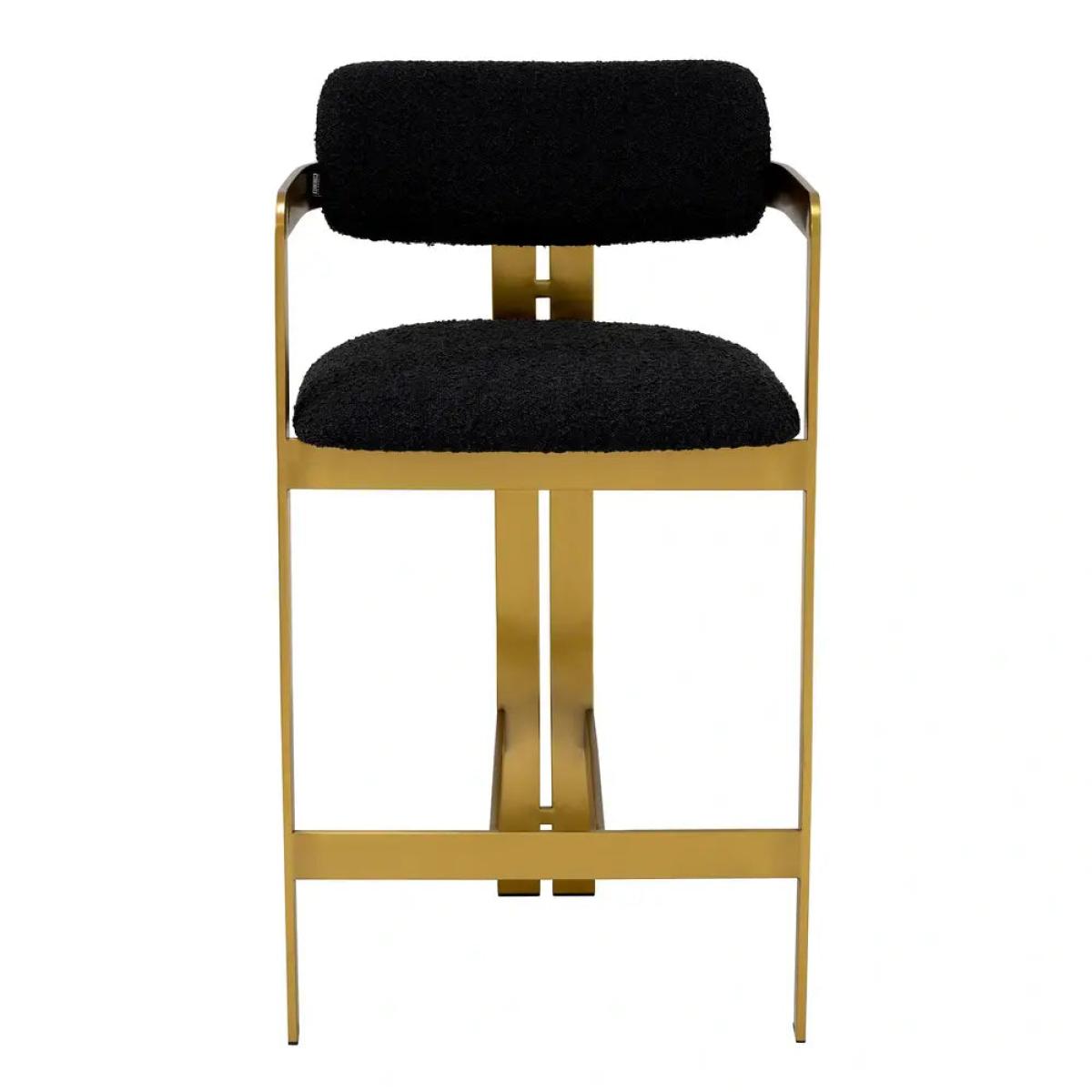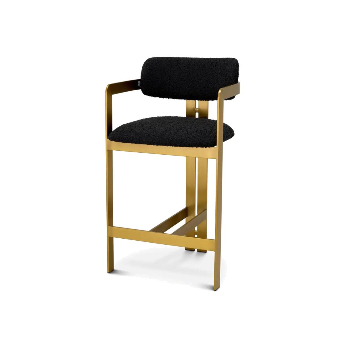 Eichholtz Cliff Brushed Brass Finish Counter Stool in Black Donato Bouclé