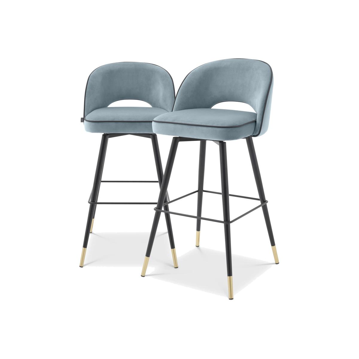 Eichholtz Cliff Set of 2 Bar Stools in Savona Blue Velvet
