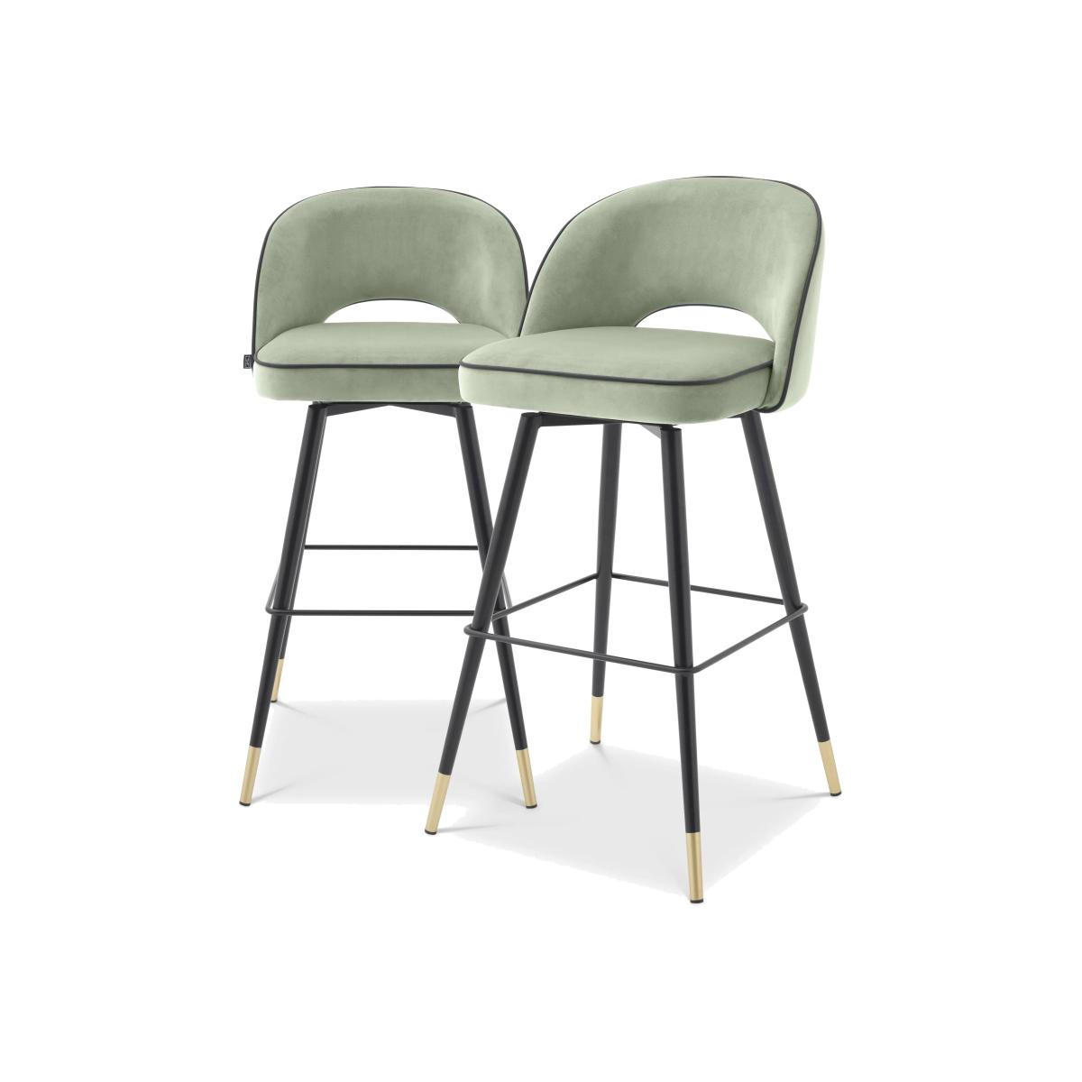 Eichholtz Cliff Set of 2 Bar Stools in Savona Pistache Green Velvet