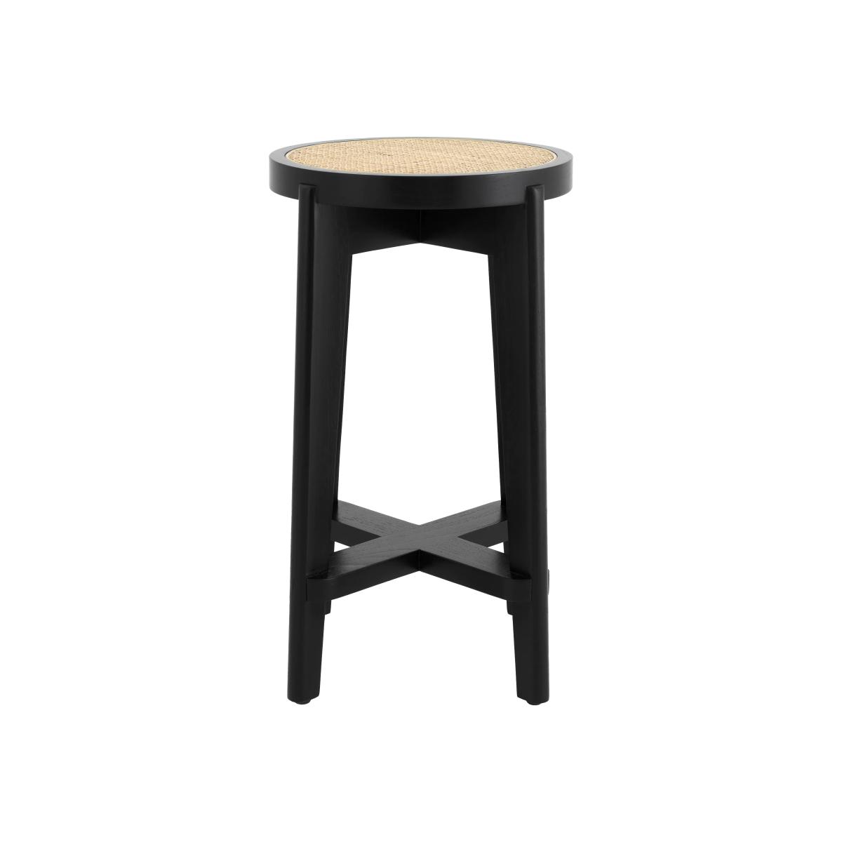 Unobtrusive but elegant, the minimalist Dareau Counter Stool features a sturdy construction of solid wood with a classic black finish. The X-shaped cross connection offers reliable steadiness and the seat of handwoven rattan cane gives it a natural look and feel.