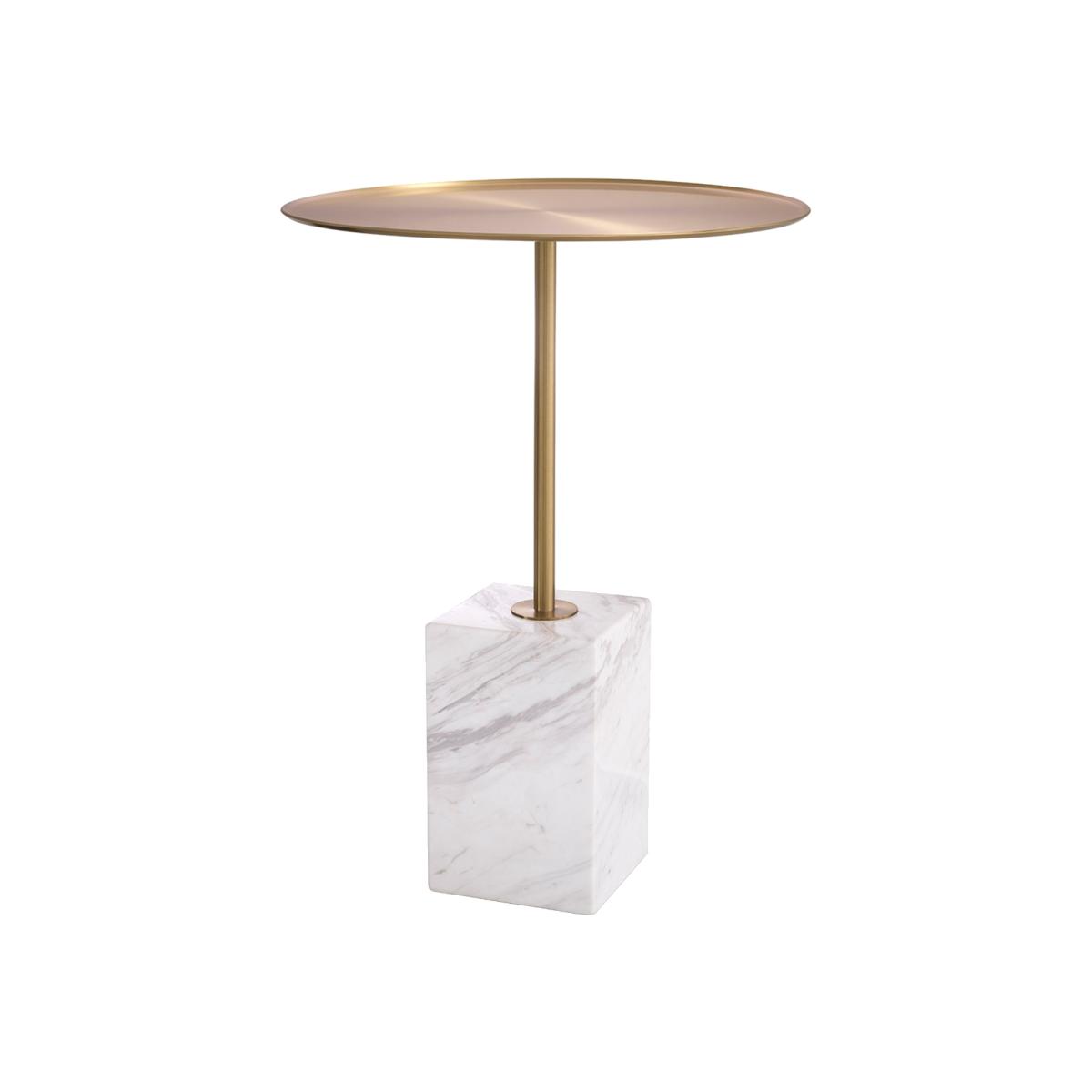 Eichholtz Cole Side Table Brushed Brass Finish White Marble, Round, Gold | Barker & Stonehouse
