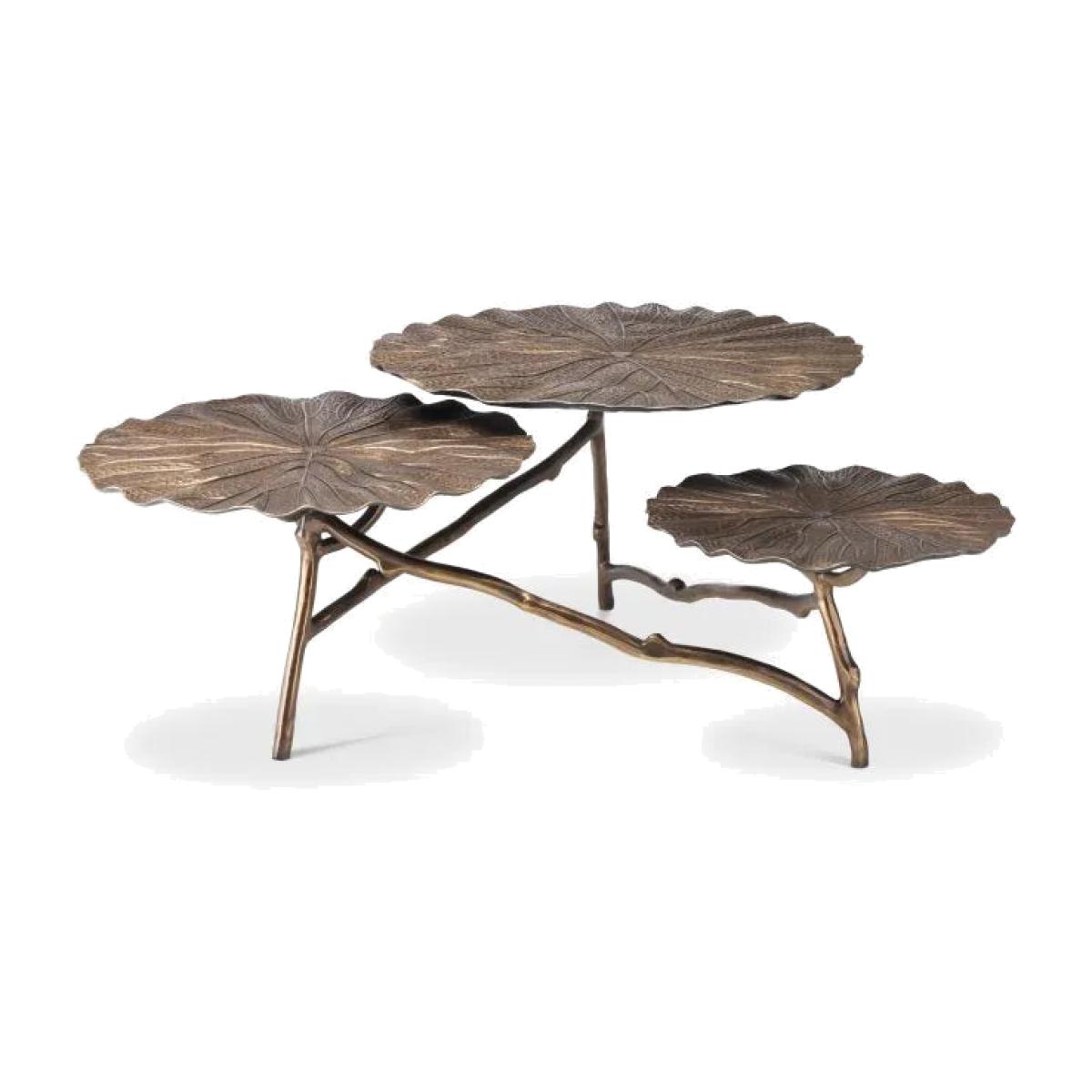 Play with natural shapes in different heights with the Colibri Coffee Table that mixes vintage and botanical style. With three tops that are reminiscent of water lily leaves, these connected nesting tables with antique brass finish add an authentic touch to your interior. Pair with the Colibri Side Table to create an impressive centerpiece in your living room. Finish/Colour: Brass (antiqued)