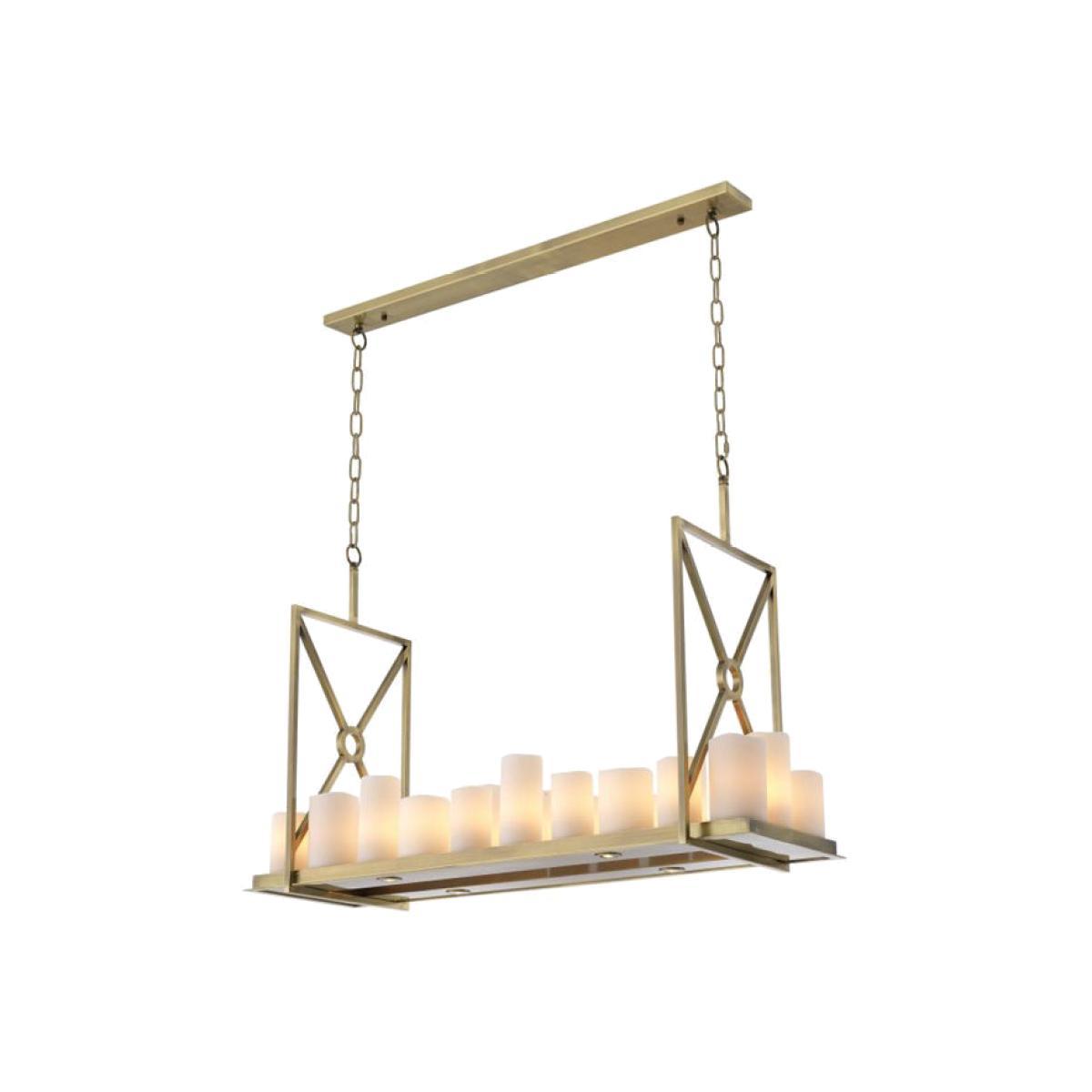 The light brushed brass finish frame of the Commodore Chandelier is supported by a strong chain link ceiling canopy. It features a rectangular plate with 22 tapered faux pillar candles which suggest the authentic formation of melting wax. The bottom of the plate features 4 recessed LED downlights. The lights in this chandelier can be turned on and off by using the included remote control. Several different settings are possible. Please note: this chandelier is not dimmable and cannot be used with a dimmer. *Moot Trading Ltd is not a lender and acts only as an introducer. The credit product is provided by Klarna Bank AB (publ). Credit is only available to permanent UK residents aged 18 and over, subject to status. Terms and conditions apply. Please note that the following products are not regulated by the FCA: Pay in 30 days and Pay in 3 instalments. Read More.