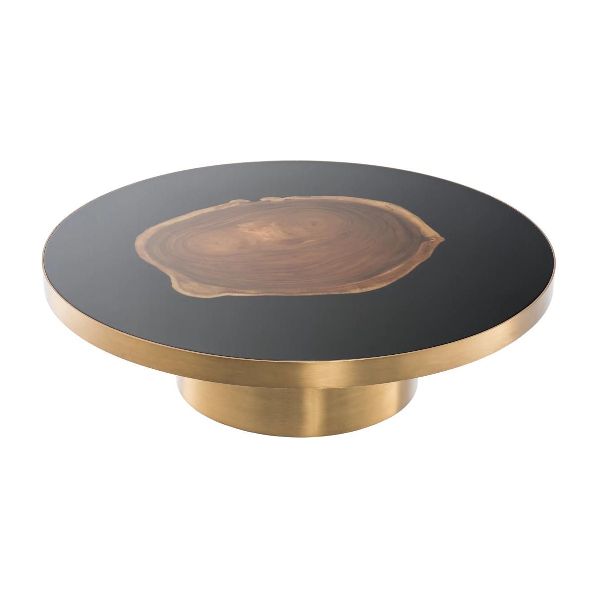 Invite the organic chic of the Concord Coffee Table into your home. This extraordinary coffee table flaunts a tabletop with a slice of tree trunk and a pedestal base with brushed brass finish. The wonderful contrast of materials turns it into an instant focal point.