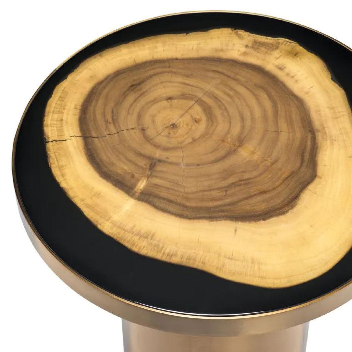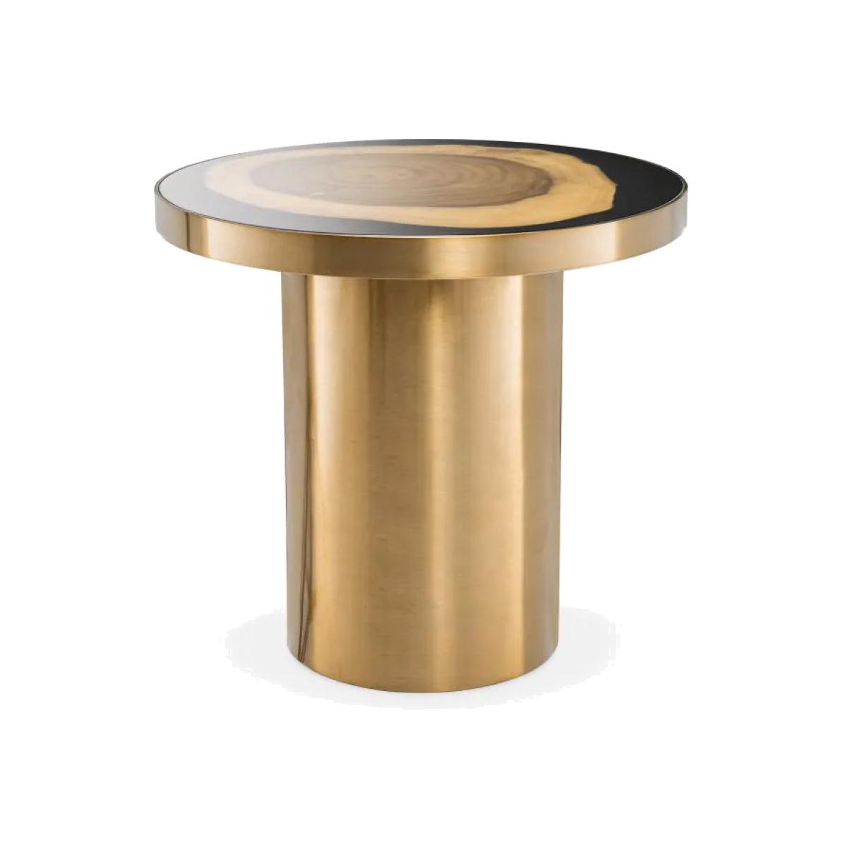 Invite the organic chic of the Concord Side Table into your home. This extraordinary accent table flaunts a tabletop with a slice of tree trunk and a pedestal base with brushed brass finish. The wonderful contrast of materials turns it into an instant focal point. Finish/Colour: Brass (brushed)