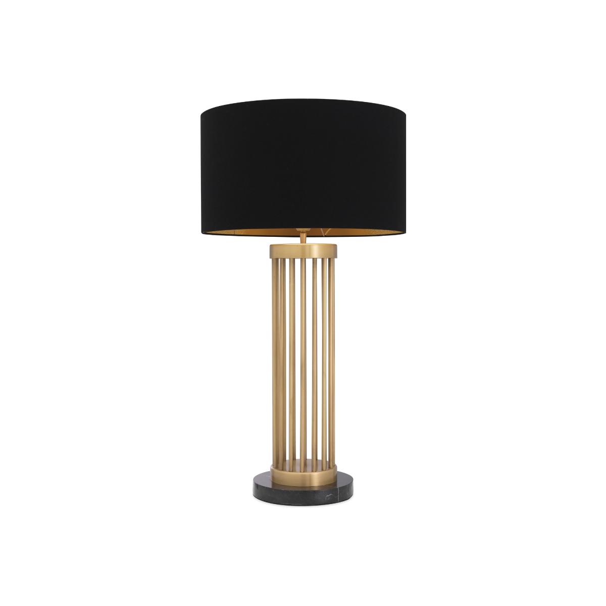 Design. The Condo Table Lamp will bring an instant modern touch to your home with understated charm. The airy cylindrical frame has an Antique Brass finish to reflect warm lighting into its surroundings, with a black marble base and black lamp shade for captivating contrast. Pair with the Condo Floor Lamp for a coordinated look!.