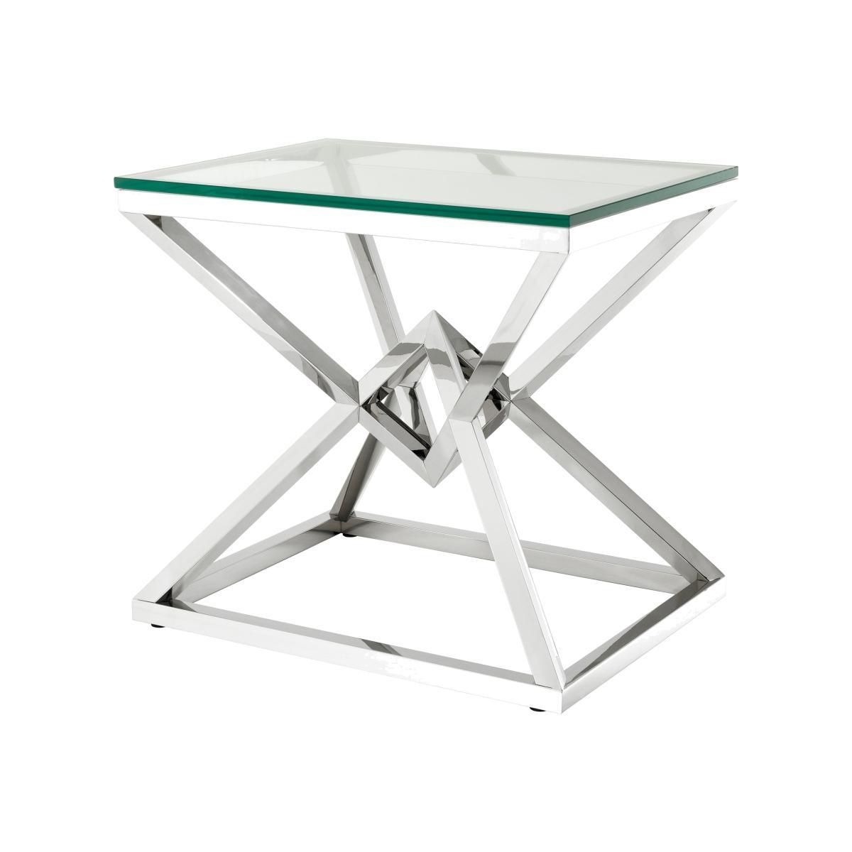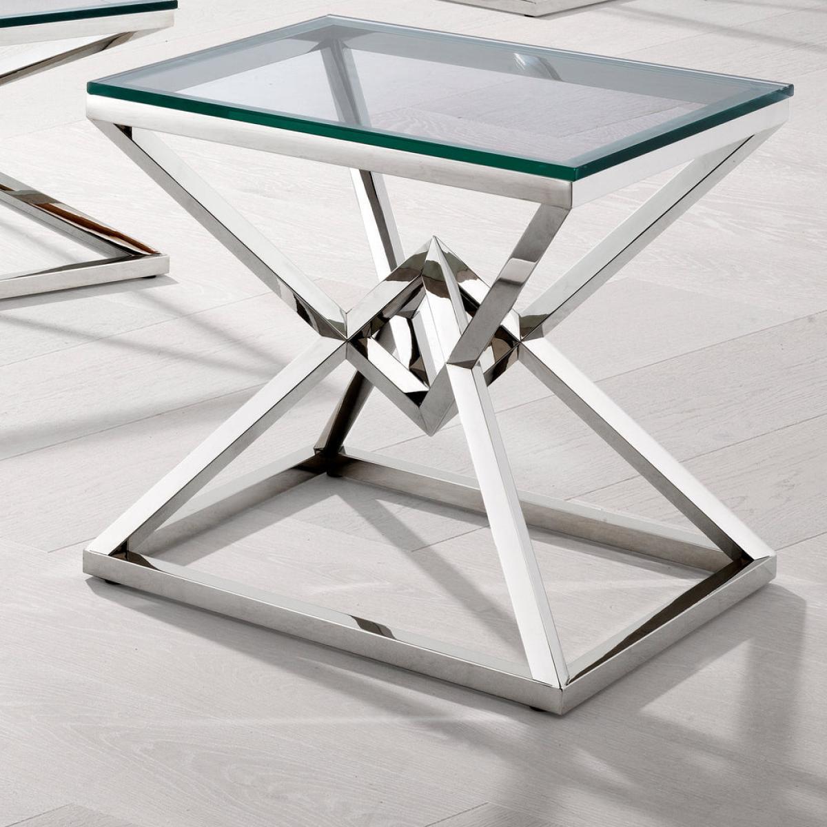 Discover the versatility of the Connor. Side Table. With its shiny pyramid base, this designer table adds radiance and splendour to your home décor. Crafted from stainless steel, the conspicuous geometric base features a polished finish and a clear glass tabletop. Downloads:. Item specification sheet. Assembly instruction. Finish: Polished stainless steel | clear glass. *Moot Trading Ltd is not a lender and acts only as an introducer. The credit product is provided by Klarna Bank AB (publ). Credit is only available to permanent UK residents aged 18 and over, subject to status. Terms and conditions apply. Please note that the following products are not regulated by the FCA: Pay in 30 days and Pay in 3 instalments. Read More.