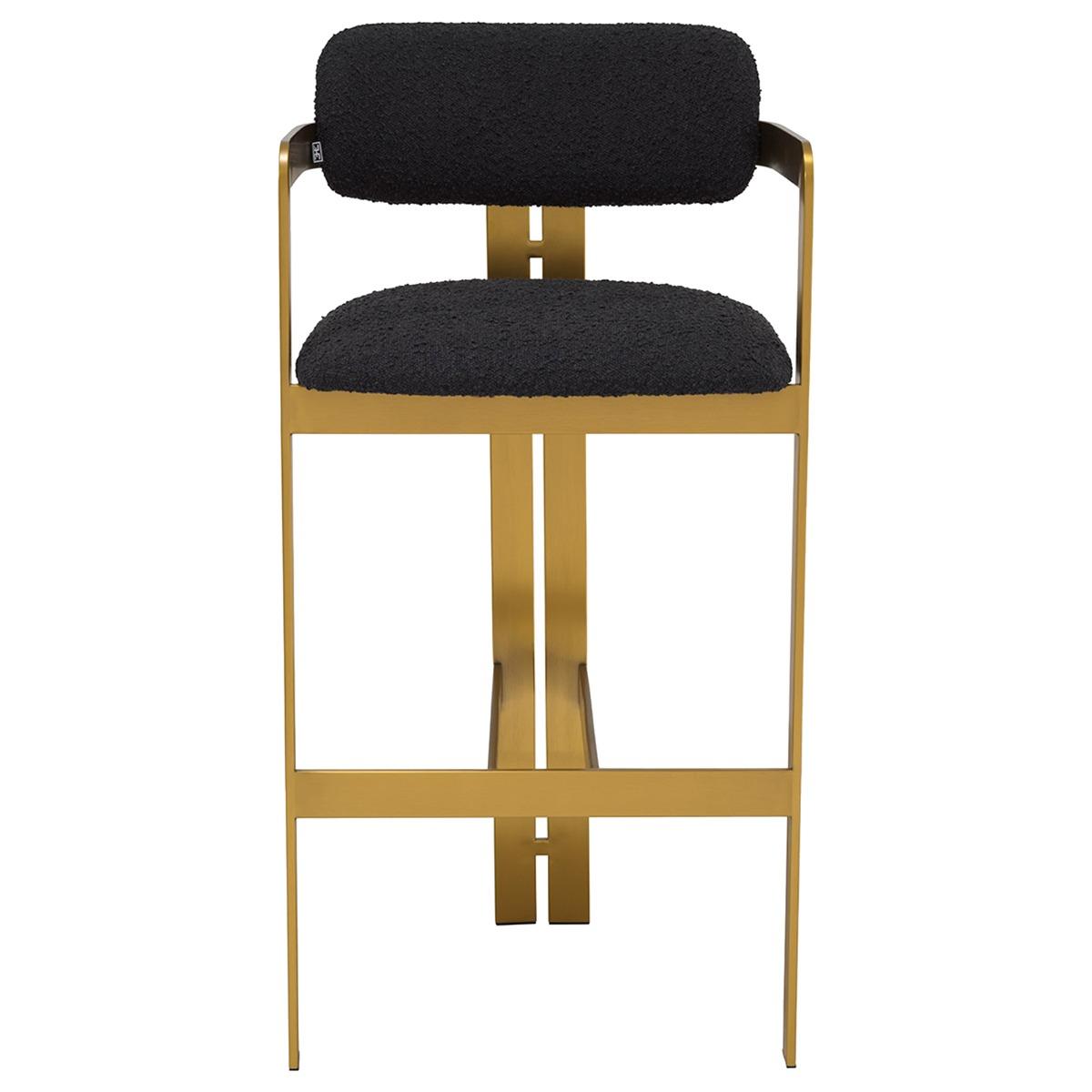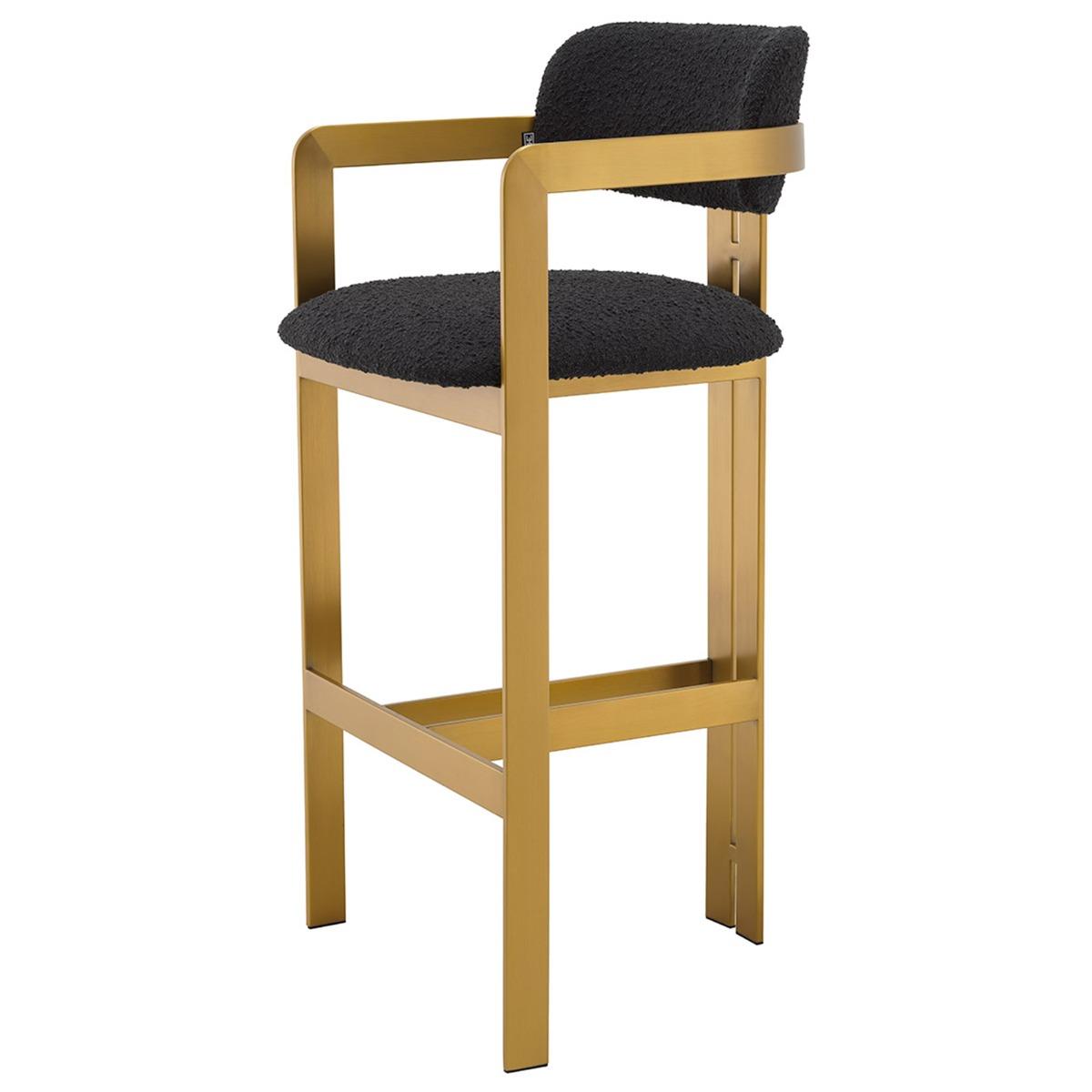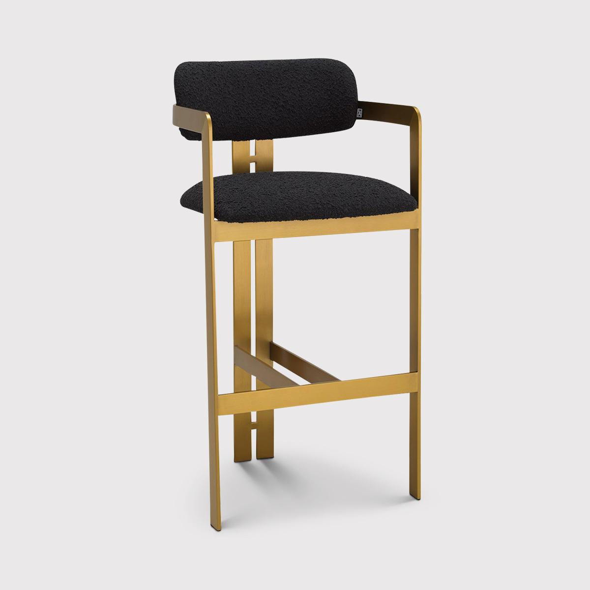 Eichholtz Donato Bar Dining Stool Brushed Brass Finish Boucl Black | Barker & Stonehouse