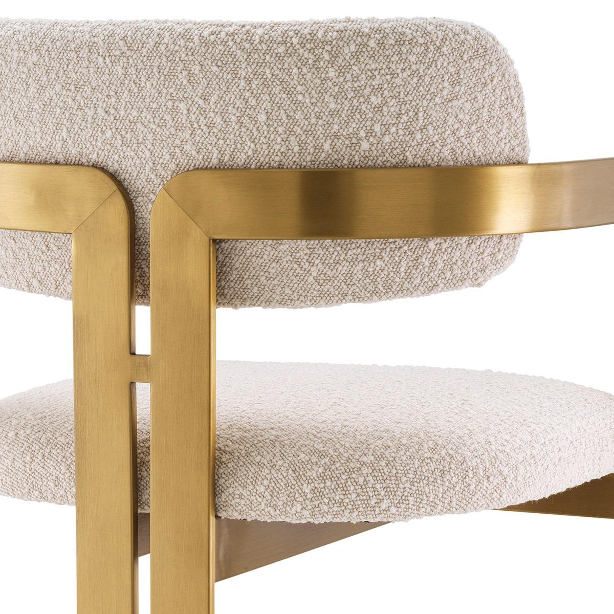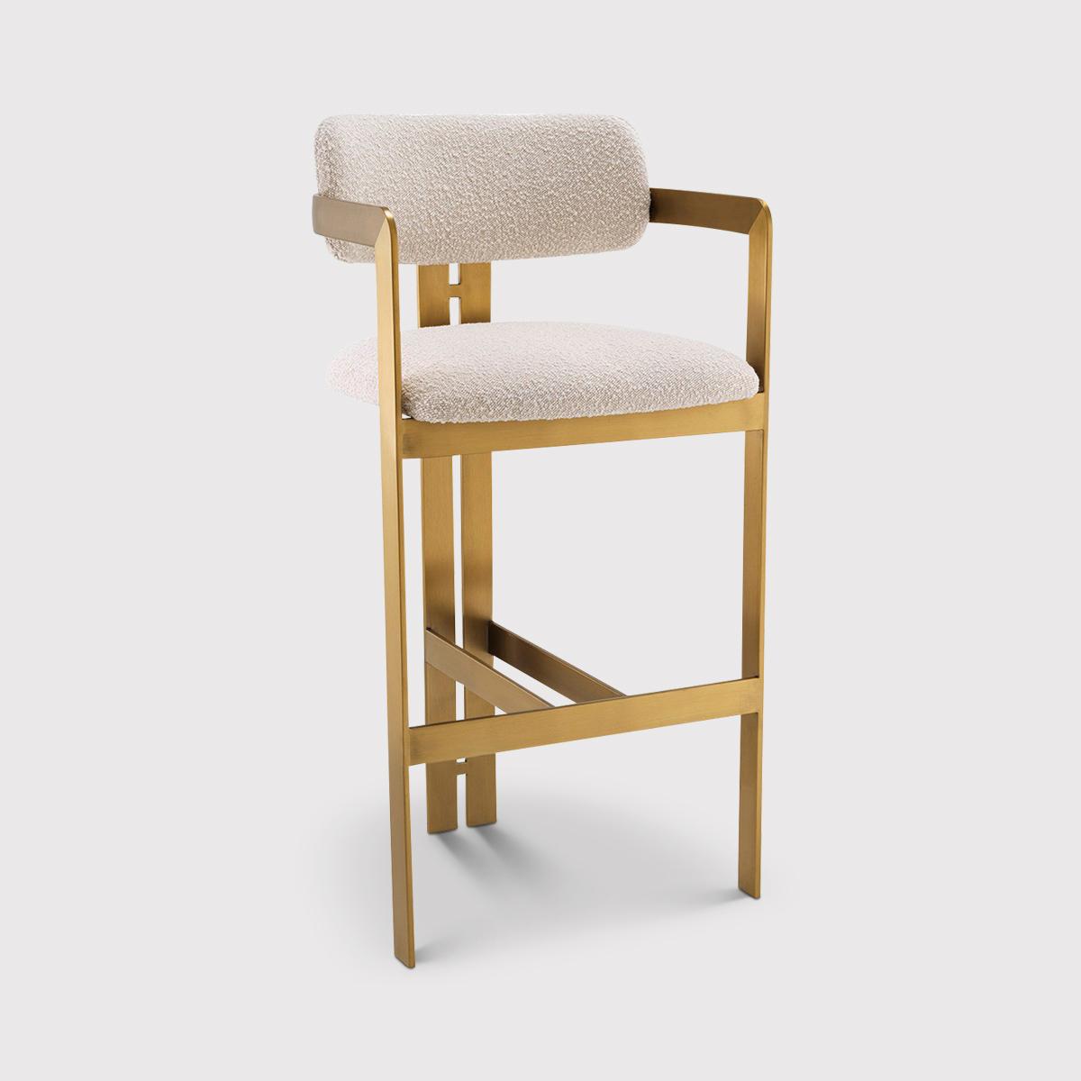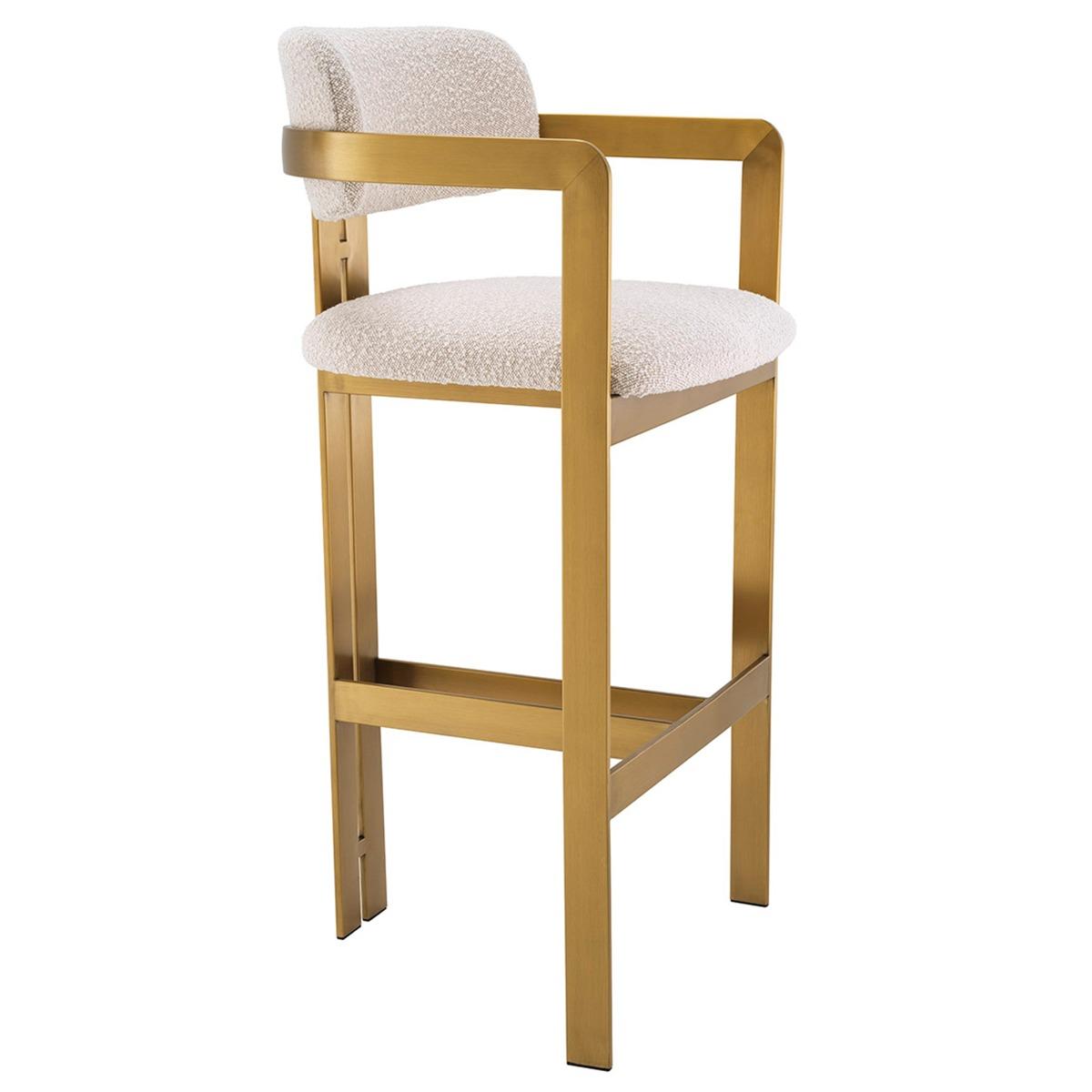 Eichholtz Donato Bar Dining Stool Brushed Brass Finish Boucl Cream | Barker & Stonehouse