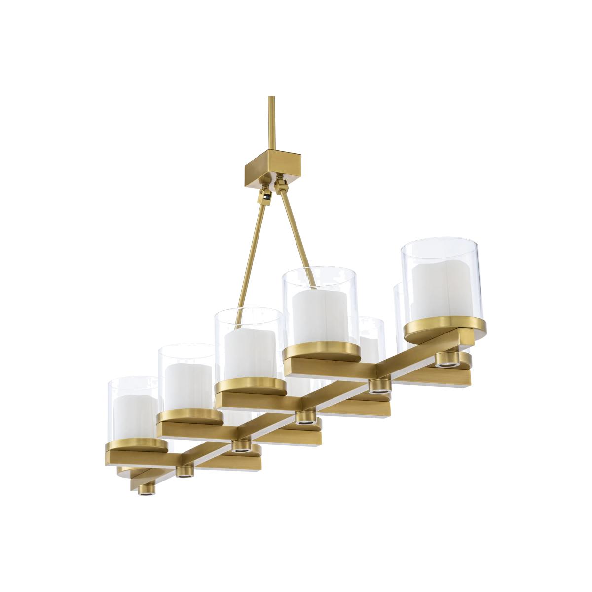 Perfect for hanging over a dining table or kitchen island, Chandelier Donovan pairs a handsome look with functional yet atmospheric lighting. Provided with an antique brass finish, this lovely lamp comes with ten clear glass cylindrical shades including faux candles with LED lights and a remote control.