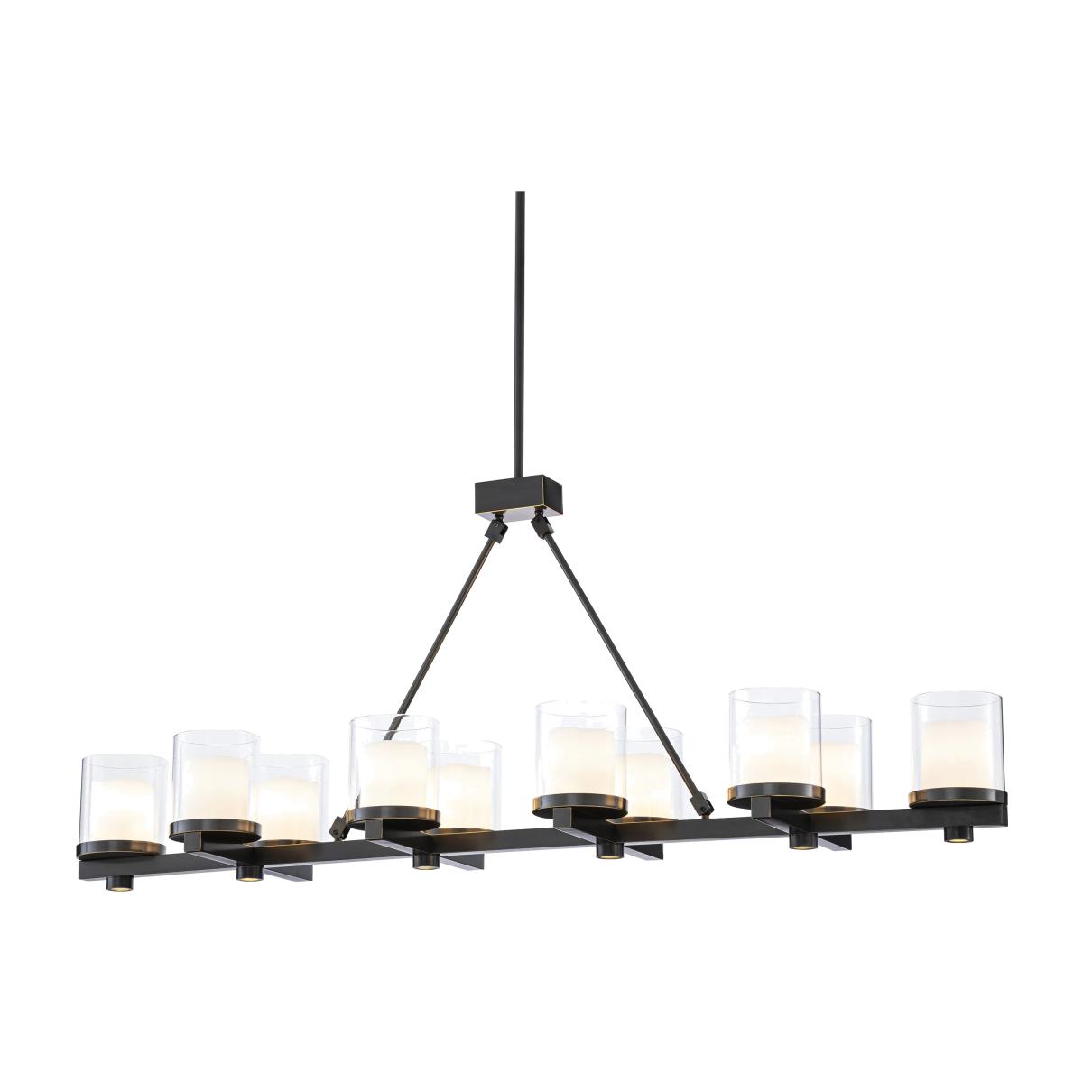 I love this chandelier for its clean, modern take on a classic design, making it versatile for both traditional and contemporary interiors. The bronze highlight finish adds warmth and richness, which pairs beautifully with neutral palettes or contrasting textures like velvet or brass accents. It works particularly well over dining tables, kitchen islands, or in spacious hallways where its elongated shape can make a statement. Practical styling tips include mixing the candle-style shades with other metallic accessories for cohesion or keeping it uncluttered to let its sleek lines shine. Keep the surrounding décor simple to let this piece be the focal point, and consider dimmable bulbs to adjust the ambiance as needed.