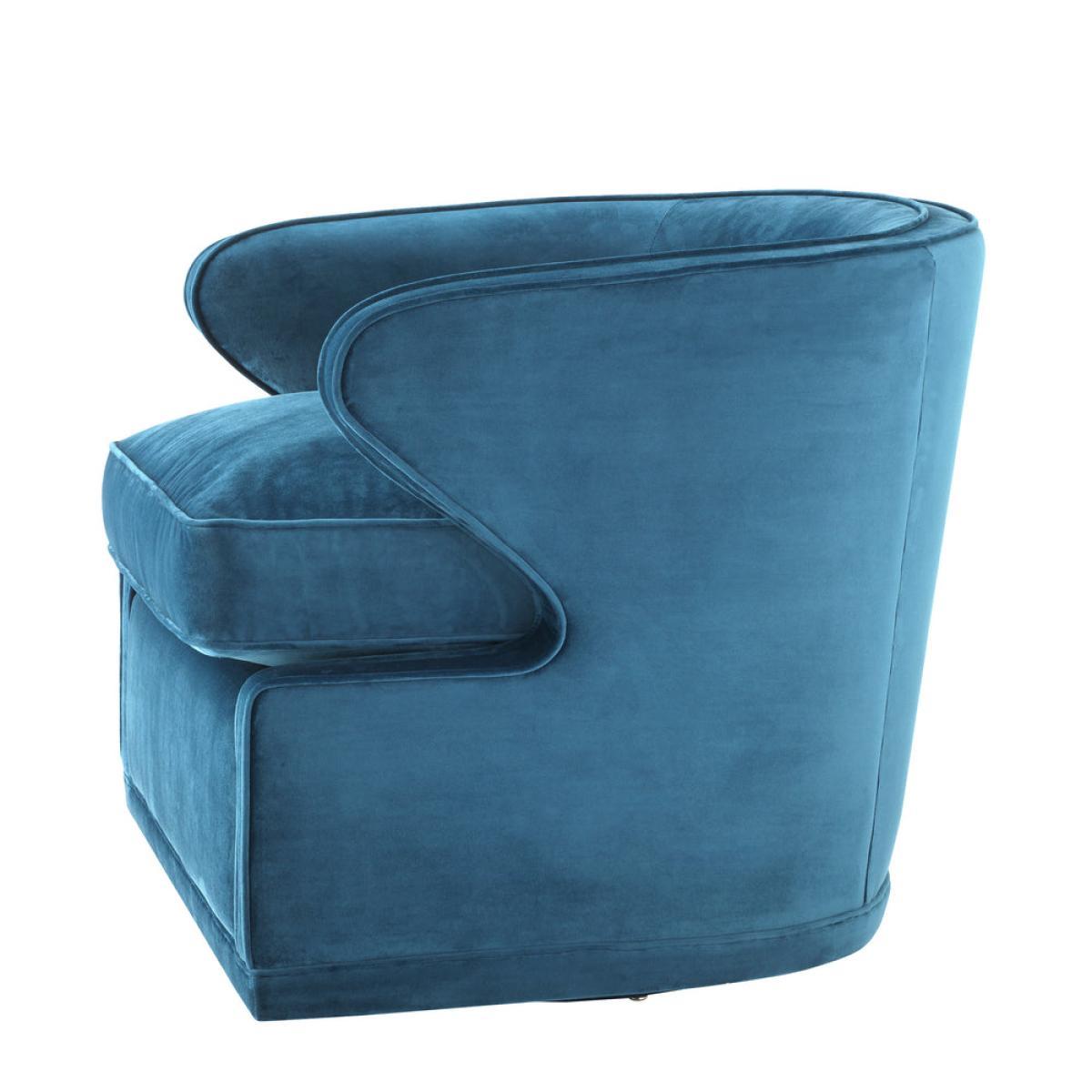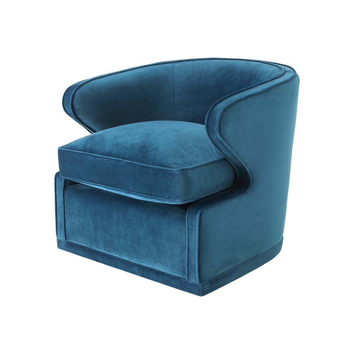 I love this blue armchair for its bold colour and sleek silhouette, which make it a versatile statement piece. It works especially well in contemporary or eclectic interiors where its rich hue can pop against neutral tones, or in more maximalist settings where it complements other vibrant accents. For styling tips, consider pairing it with textured cushions and a cosy throw to soften the look, or place it alongside brass or gold accessories for a touch of luxe. Its rounded shape invites comfort, making it an ideal spot for reading or relaxing in living rooms or bedrooms that aim for a modern yet inviting atmosphere.