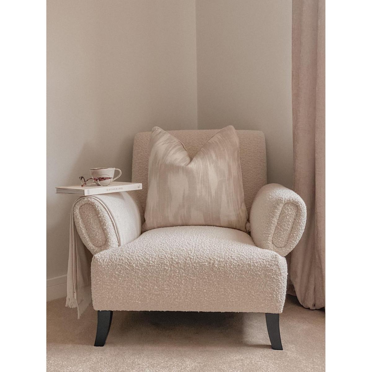 With black feet, a white-coloured bouclé upholstery, flared arms and comfy cushion back, Chair Fausto is equal parts style and comfort. Its neutral colour scheme is sure to suit any décor and it is an exquisite seating option for your bedroom, lounge or any space in your home that needs a touch of cosiness. *Moot Trading Ltd is not a lender and acts only as an introducer. The credit product is provided by Klarna Bank AB (publ). Credit is only available to permanent UK residents aged 18 and over, subject to status. Terms and conditions apply. Please note that the following products are not regulated by the FCA: Pay in 30 days and Pay in 3 instalments. Read More.