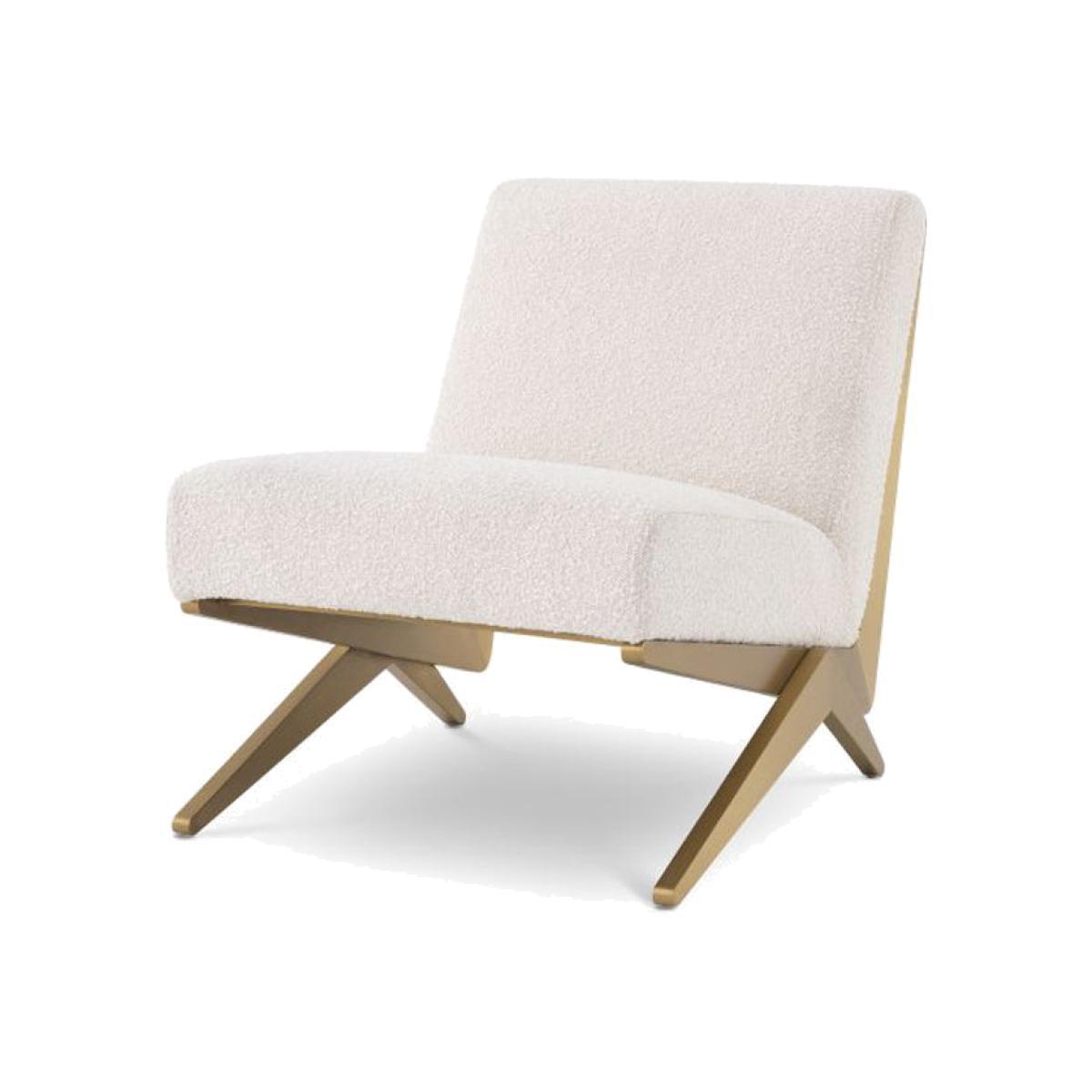 Chair Fico pairs quality with simplicity. This stylish armless chair is a contemporary steel take on wooden minimalist furniture from the 1950s. Featuring a brushed brass finish frame and cream-coloured bouclé upholstery, it will be a comfortable and stylish addition to your home, whether you use it as a functional seat in your living room or as an accent chair in your bedroom. *Moot Trading Ltd is not a lender and acts only as an introducer. The credit product is provided by Klarna Bank AB (publ). Credit is only available to permanent UK residents aged 18 and over, subject to status. Terms and conditions apply. Please note that the following products are not regulated by the FCA: Pay in 30 days and Pay in 3 instalments. Read More.