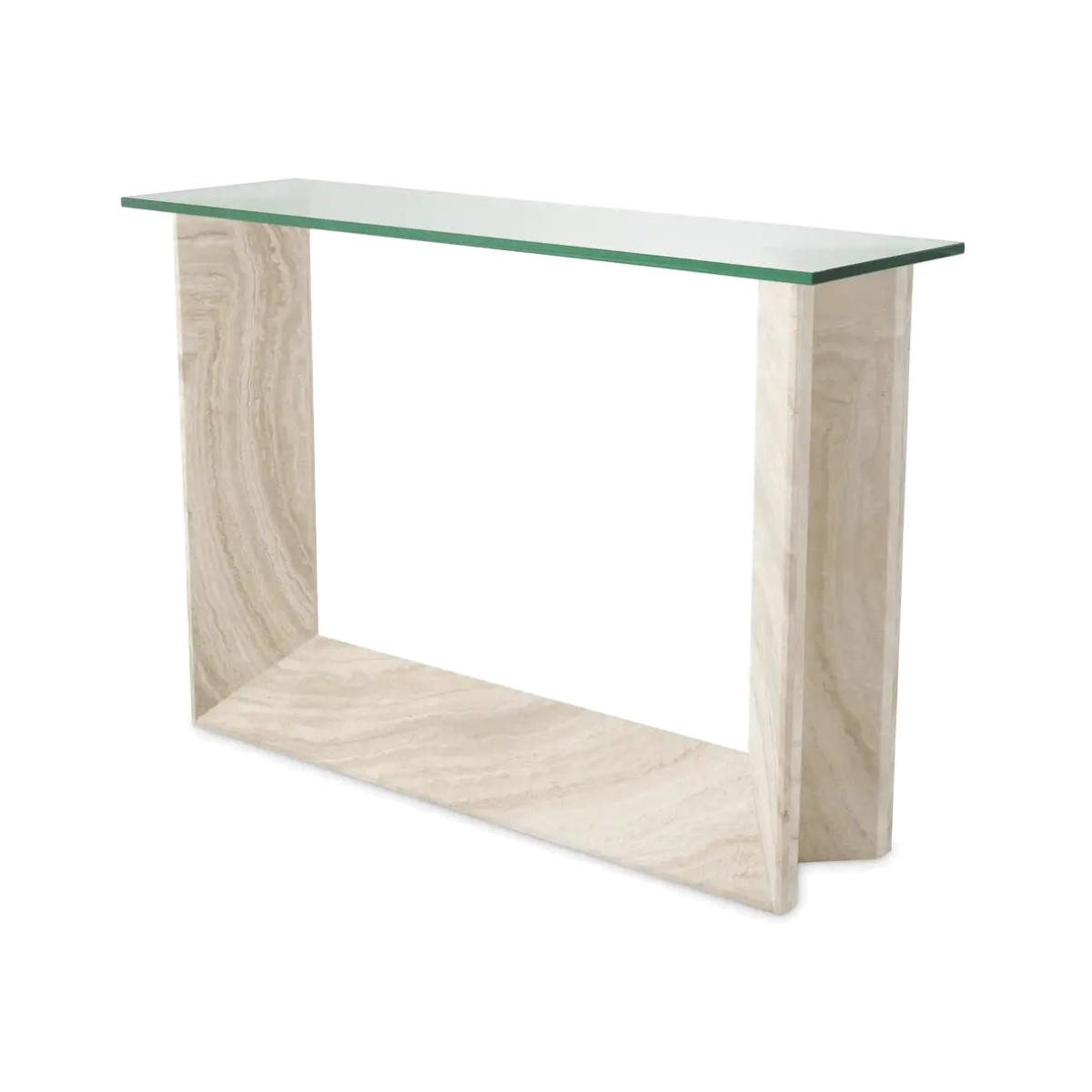 Console Table Fortuna travertine Travertine | clear glass top Dimensions: 37 x 120 x H. 83,5 cm