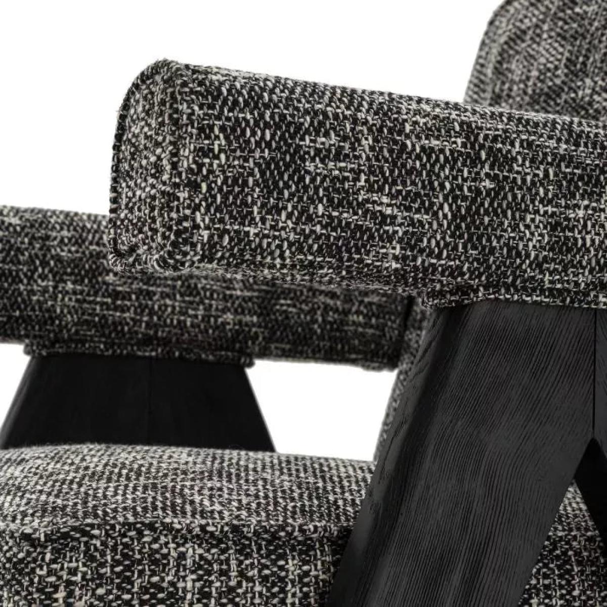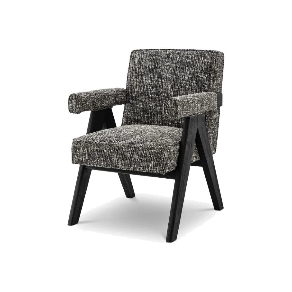 Chair Greta pairs a vintage look with ultimate seating comfort. Crafted from solid wood with a black finish, this beautiful armchair features the V-shaped legs that are characteristic of celebrated minimalist designs from the 1950s and 1960s. The seat, backrest and distinguished armrests are upholstered in Cambon black and finished with piping. Finish/Colour: Black