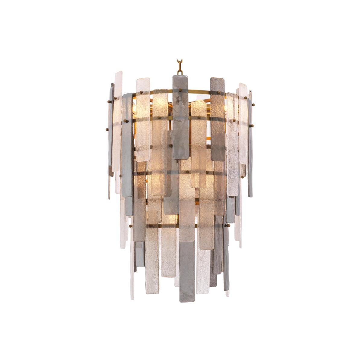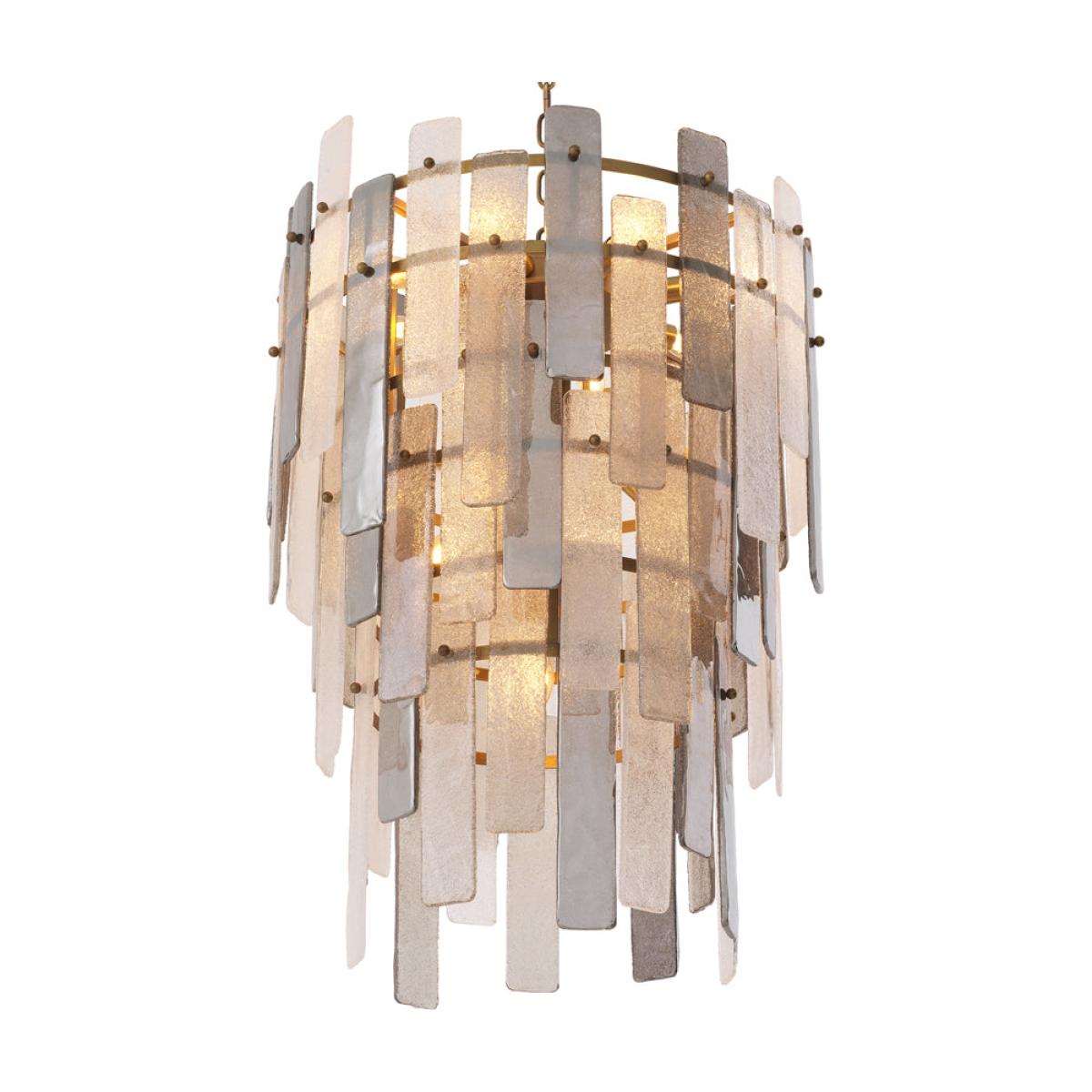 Effortlessly classy with a touch of modern appeal, the Greyson Chandelier has a tapered frame with a gorgeous antique brass finish. Trimmed with strips of handmade glass in different colours and le. View More. Effortlessly classy with a touch of modern appeal, the Greyson Chandelier has a tapered frame with a gorgeous antique brass finish. Trimmed with strips of handmade glass in different colours and lengths, this contemporary chandelier creates a luxurious vintage vibe. It will bring an ambient, cosy illumination into your interior.