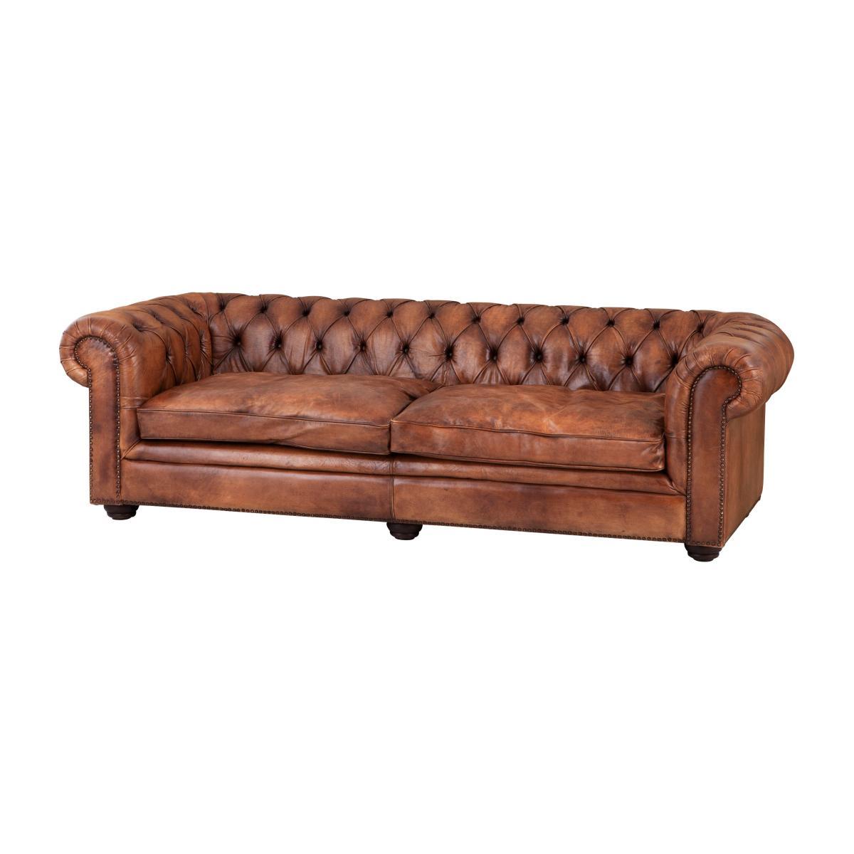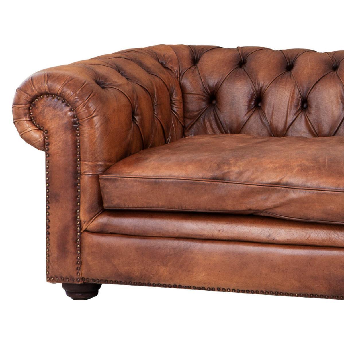 The Chesterfield style Club Sofa Gymnasium features a deep buttoned aged Tobacco leather upholstery with two comfortable seat pads, attractive pleated detail across the scroll arms and roll back, antique brass stud detailing around the arms and brown wood bun feet. Downloads:. Item specification sheet. Finish: Tobacco leather | brown feet. *Moot Trading Ltd is not a lender and acts only as an introducer. The credit product is provided by Klarna Bank AB (publ). Credit is only available to permanent UK residents aged 18 and over, subject to status. Terms and conditions apply. Please note that the following products are not regulated by the FCA: Pay in 30 days and Pay in 3 instalments. Read More.