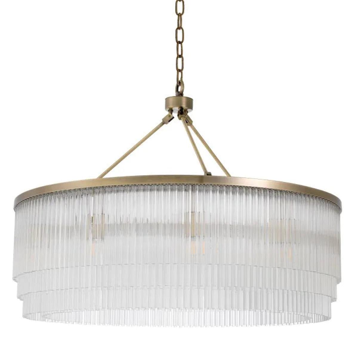 Beautify your interior with the glamorous Hector L Chandelier. This contemporary interpretation of Art Deco design is embellished with tiers of clear glass rods. It gives a pleasing ambient light and is provided with a light brushed brass finish.