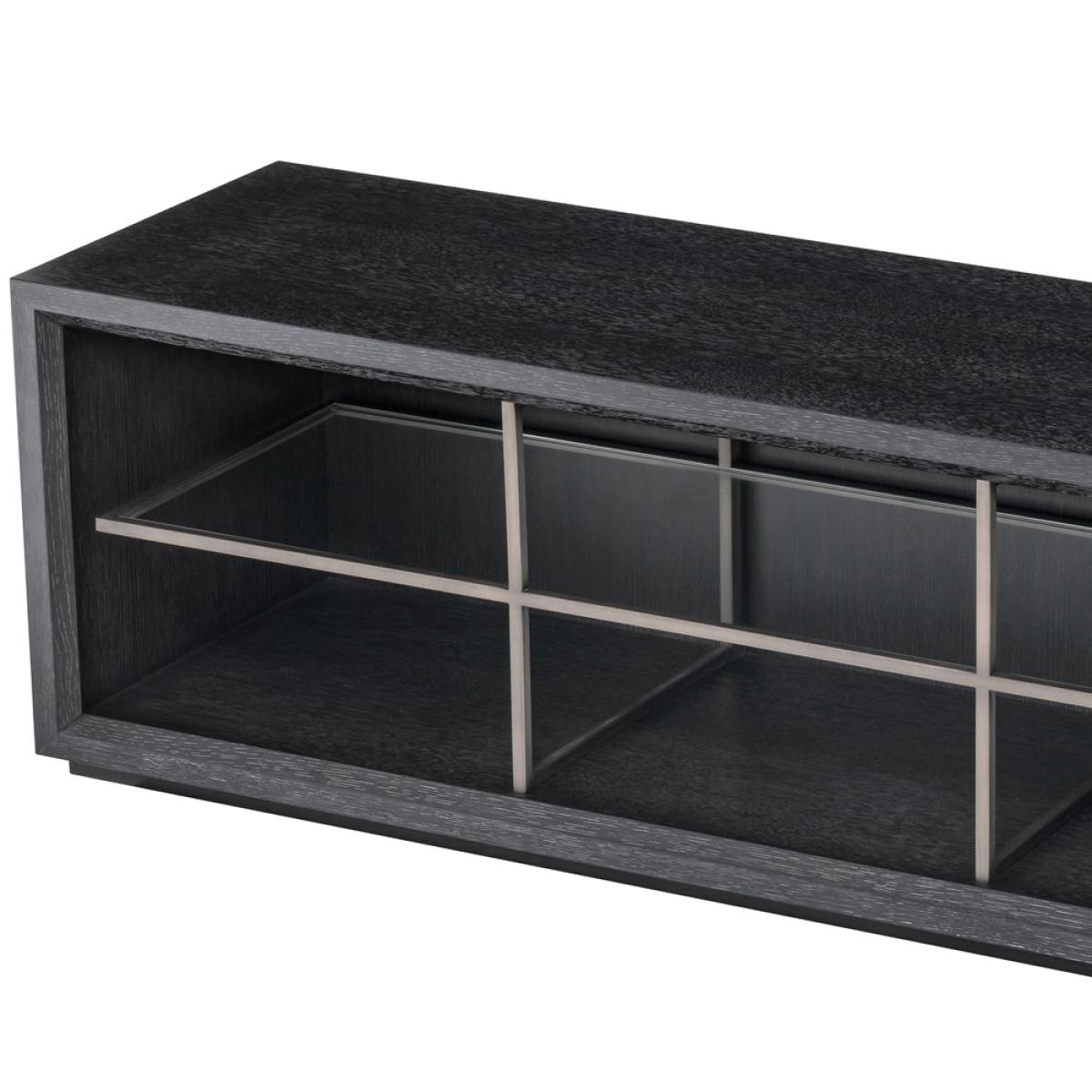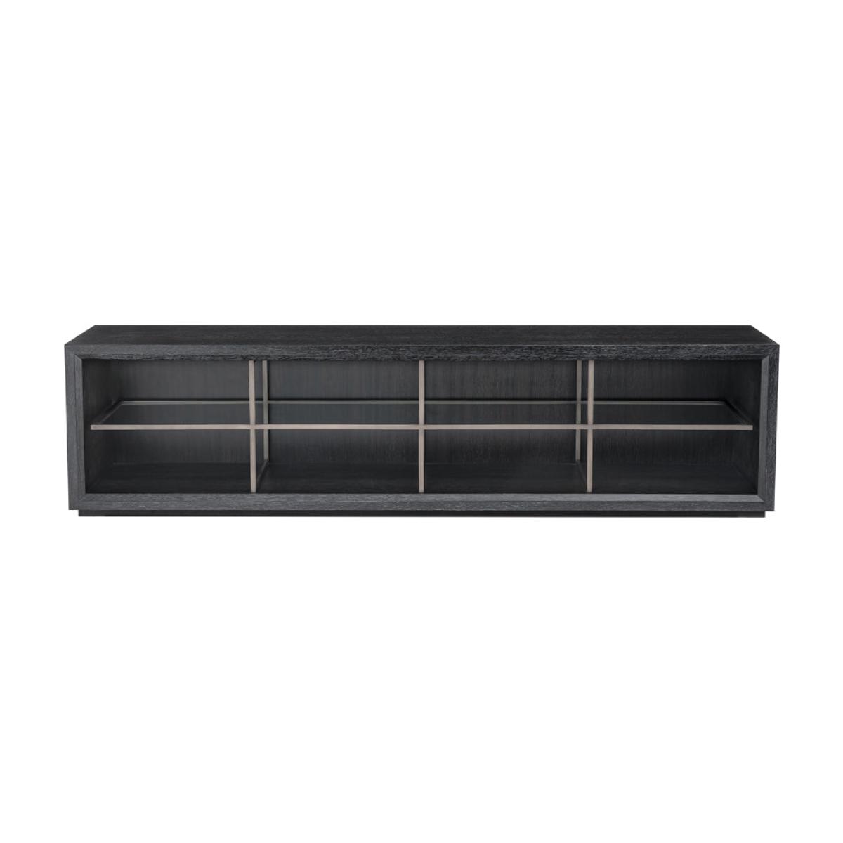 Bring a modern feel to your living room or entertainment space with TV Cabinet Hennessy L. Pairing a clean look with ample storage space, this tv unit provides a beautiful blend of style and functi. View More. Bring a modern feel to your living room or entertainment space with TV Cabinet Hennessy L. Pairing a clean look with ample storage space, this tv unit provides a beautiful blend of style and functionality. Finished in charcoal oak veneer and containing a medium bronze inner frame with 4 compartments, it features an open build, sleek silhouette, and integrated storage, providing plenty of space for electronics and a media library.