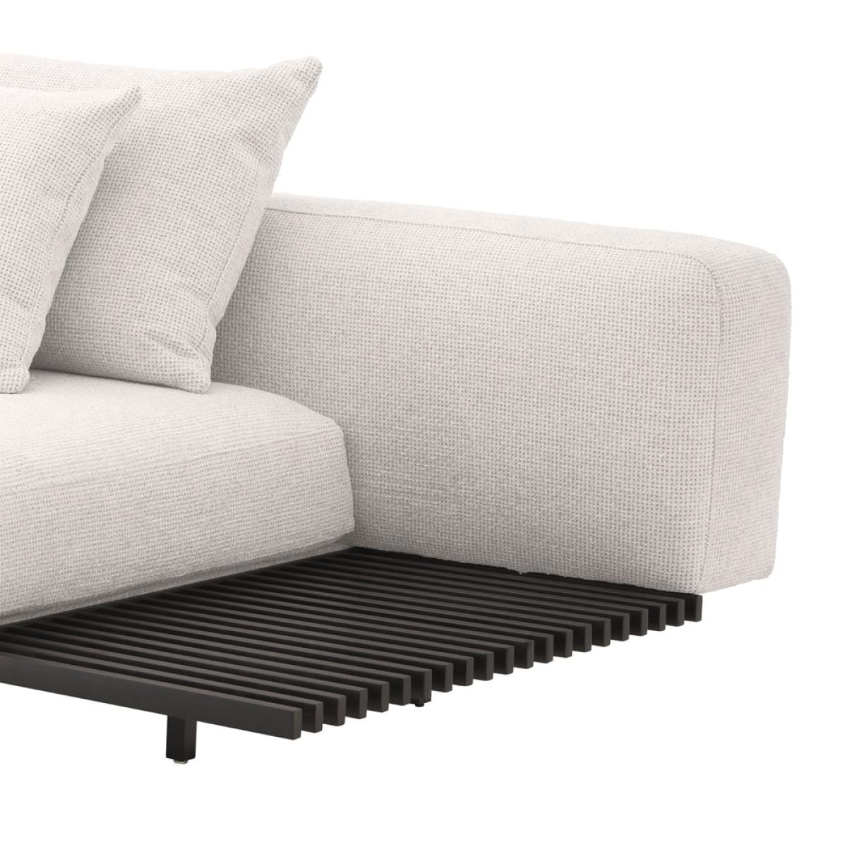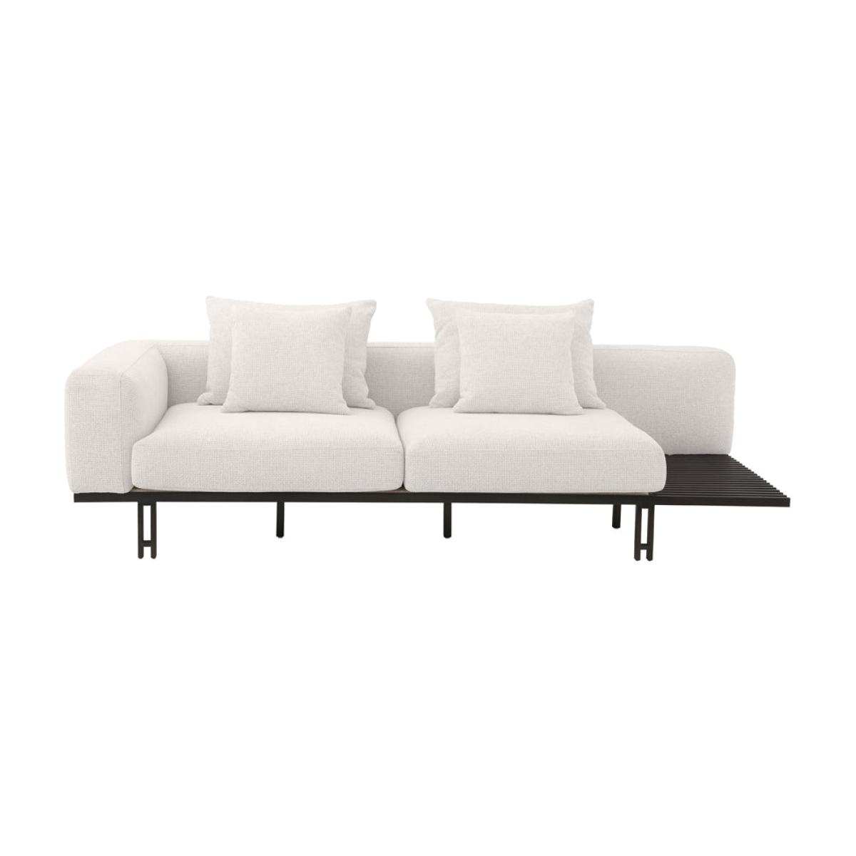 The pinnacle of modern design, Sofa Horace is available in a left and right version. Resting on a solid bronze finish base, this sleek 2-seater with Lyssa off-white upholstery adapts to the dimensions of your living space and your lifestyle. The slatted top of the integrated side table lends it graphic appeal and makes it a perfect addition to a modern, contemporary or industrial interior. Horace comes with two large and two small throw cushions. Dimensions: H: 60.5 x W: 104 x L:233 cm Seat Height: 42.5cm Seat Depth: 81cm Arm Height: 60.5cm Materials: Fabric Assembly Required: No. Care instructions: Vacuum upholstery regularly. Hand fluff and reverse the cushions regulary. Removes spills and other stains immediately. No harsh abrasives or cleaners. Specialist stain removes like HG stain remover or similar products maybe used but follow cleaner instructions to the letter. Additional Information: Do not place seating near a fireplace that is in use. Avoid exposure to direct sunlight. Be careful of clothing items that can transfer colour to other fabrics as this maybe unfixable. Downloads: Product Specification Sheet