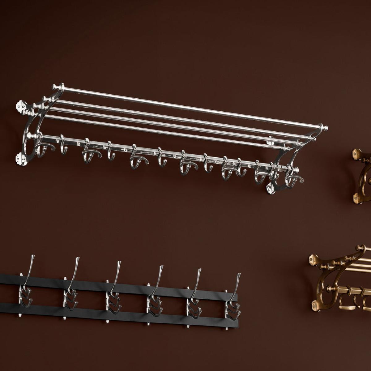 The nickel finished Hudson L Coatrack is reminiscent of the luggage racks in old steam trains. This nostalgic wall mounted coat rack features 13 hooks for hanging overcoats and jackets and a top shelf for gloves, hats and the like. Downloads:. Item specification sheet. Assembly instruction. Finish: Nickel finish. *Moot Trading Ltd is not a lender and acts only as an introducer. The credit product is provided by Klarna Bank AB (publ). Credit is only available to permanent UK residents aged 18 and over, subject to status. Terms and conditions apply. Please note that the following products are not regulated by the FCA: Pay in 30 days and Pay in 3 instalments. Read More.