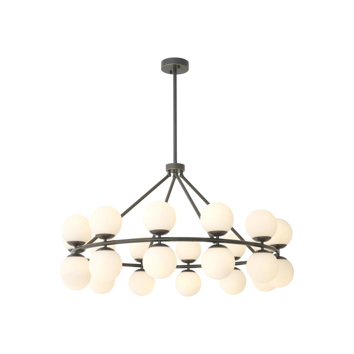With a nod to medieval lighting fixtures and a hint of retro style, the modern Hutchinson Chandelier features a circular hooped frame with a bronze highlight finish and 12 whites globes on either side. A great lighting solution that is suitable for both residential interiors and hospitality décors.