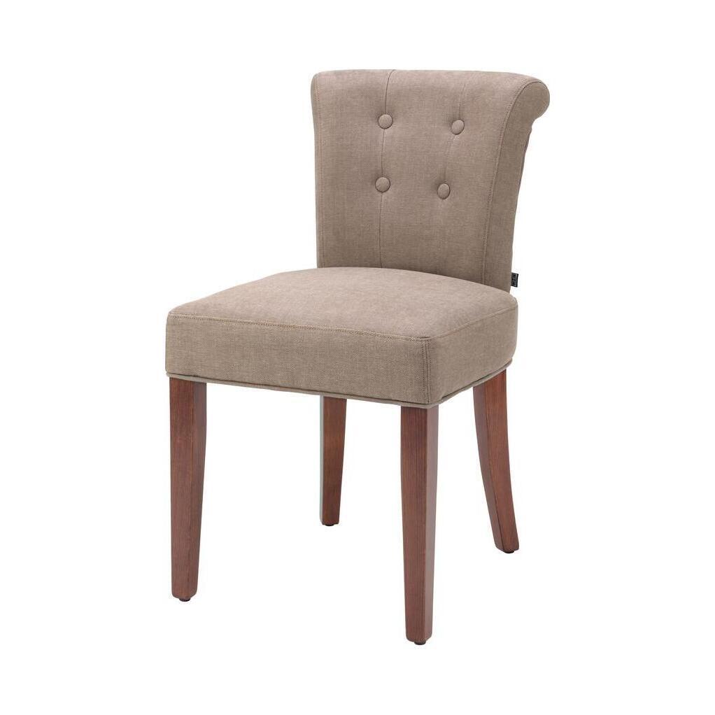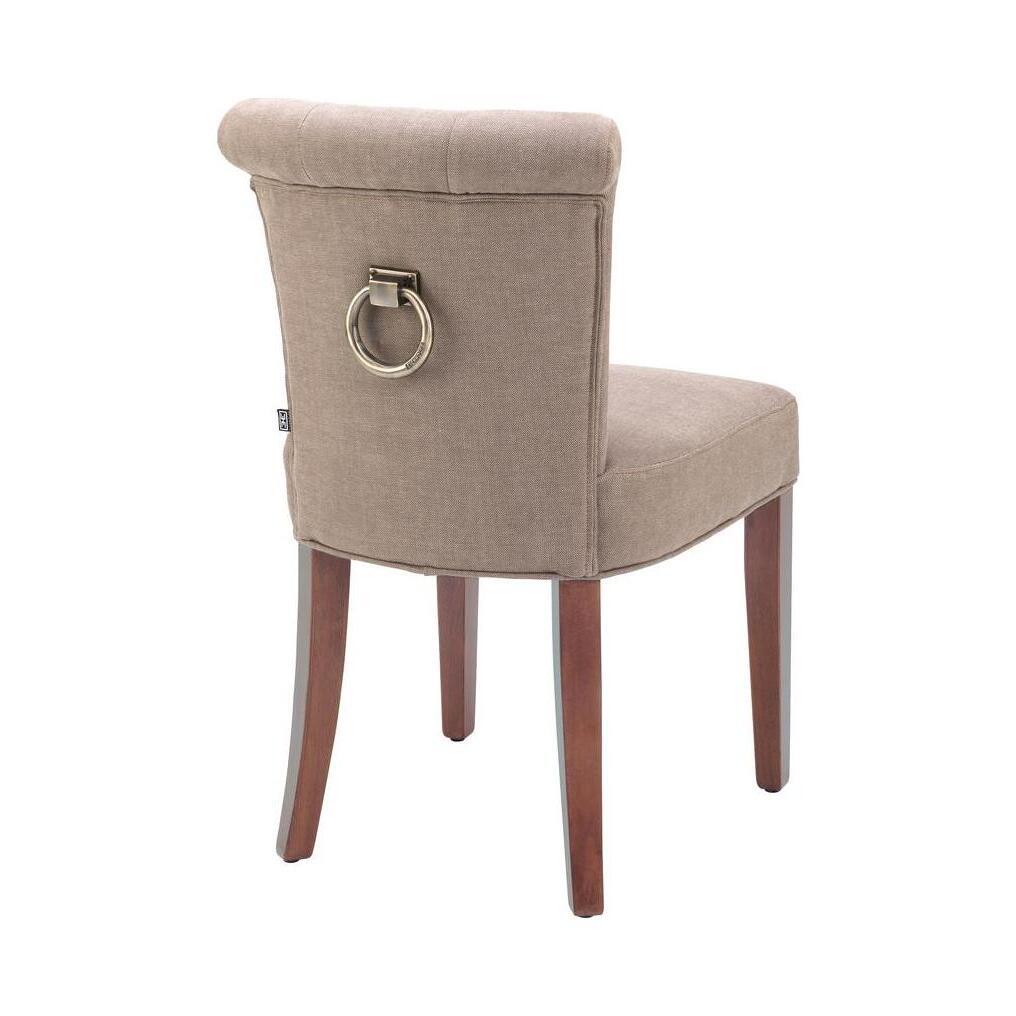 Pull the. Dining Chair. Key Largo up to your dining room table to enjoy sumptuous dinners with friends and family. A modern twist on classic style, this charming dining chair with camel linen upholstery, antique bronze studs, brass handle detail, and brown wood legs offers the perfect accent for luxury entertaining. Downloads:. Item specification sheet. Finish: Camel linen | brown legs.