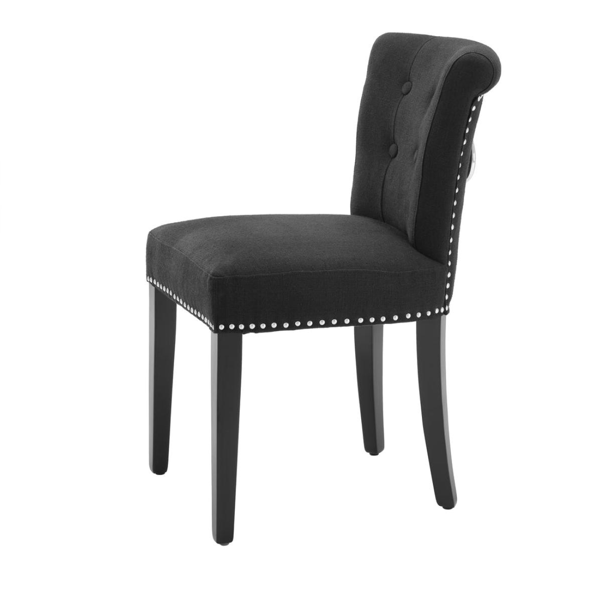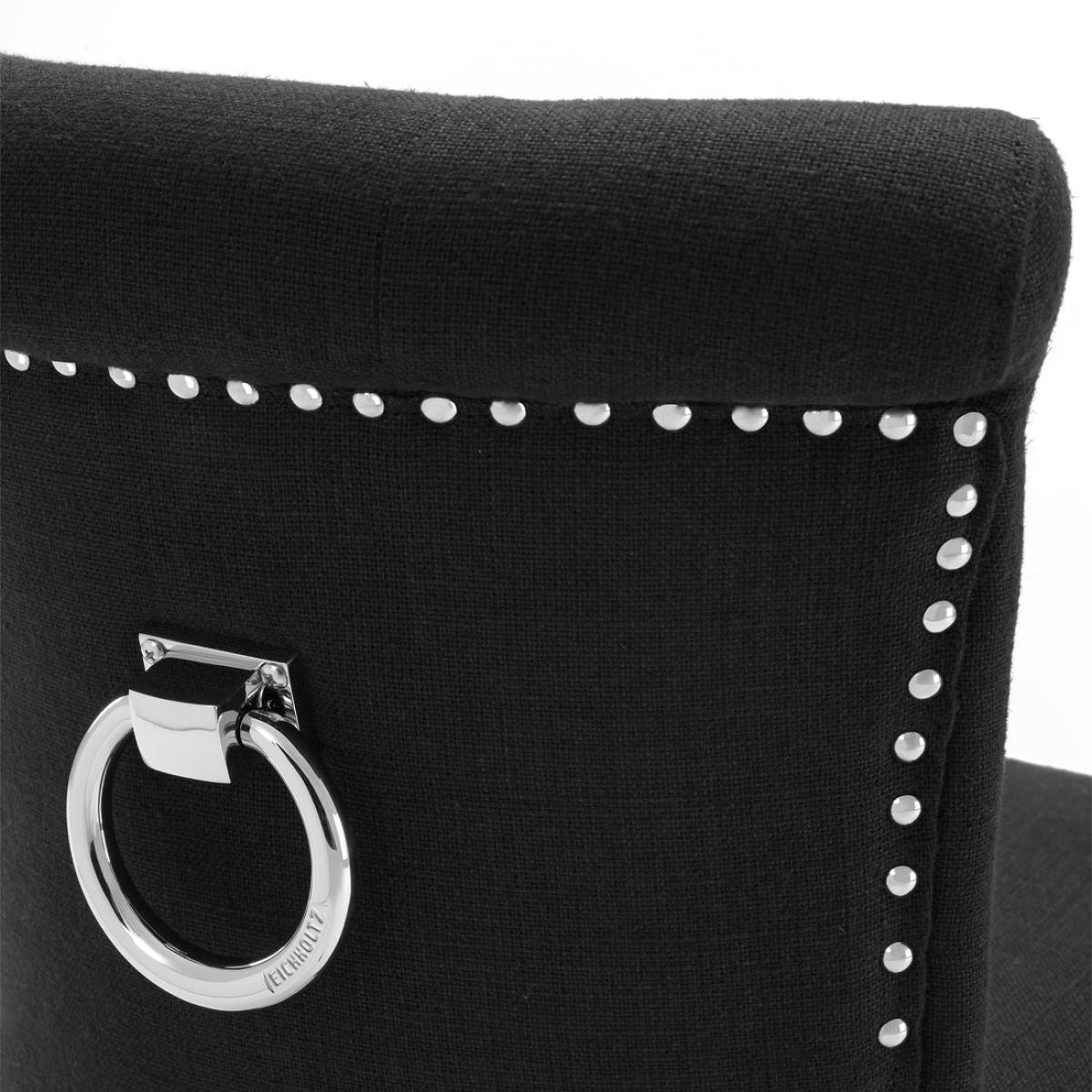 Pull the Key Largo Dining Chair up to your dining room table to enjoy sumptuous dinners with friends and family. A modern twist on classic style, this charming dining chair with black linen upholstery, nickel studs and handle detail, and black legs offers the perfect accent for luxury entertaining. Downloads: Item specification sheet Dimensions:W:49 x D:56 H: 88 cm. Weight: 10kg Finish: Black linen | black legs | nickel nails